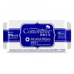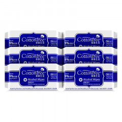棉德生活(Cottontree)75%食用酒精抑菌消毒湿巾 17 * 18cm (单片独立包装) 10片/包*6包