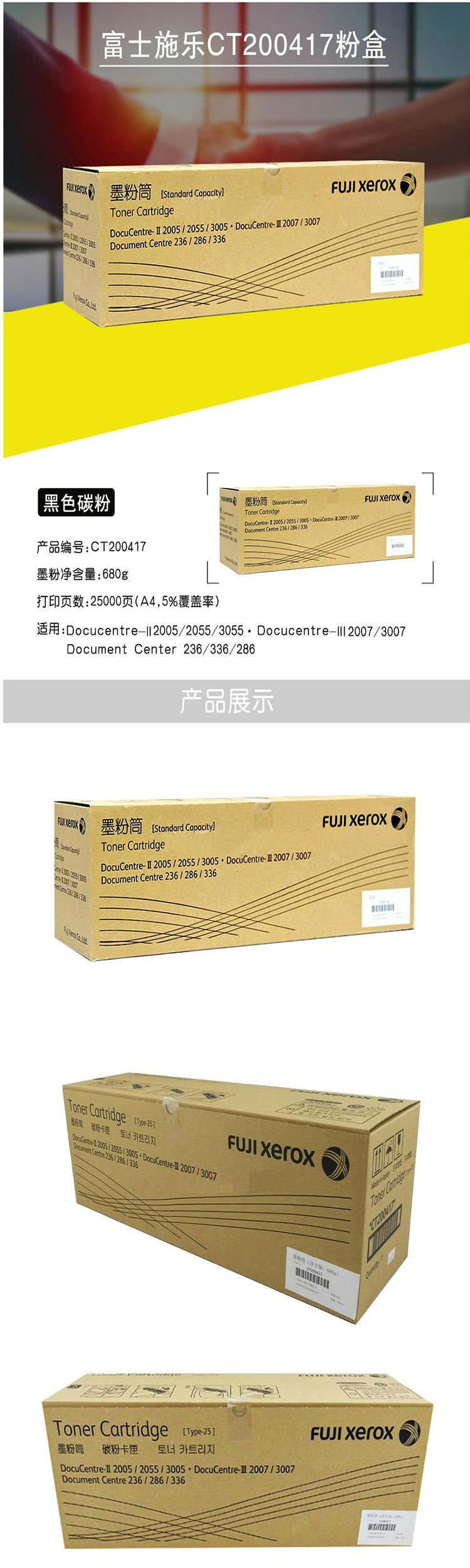 商品名称:富士施乐 CT200417/CT202109粉盒墨粉盒适用施乐II2005/2055 III2007/3007 236