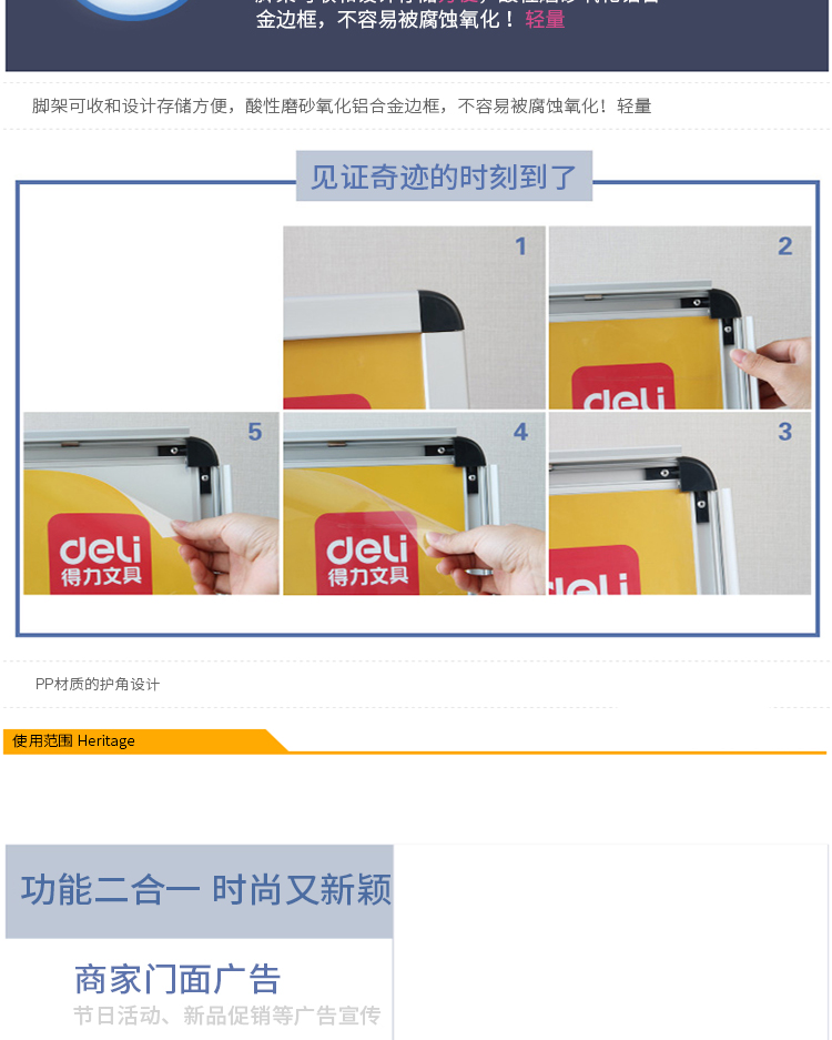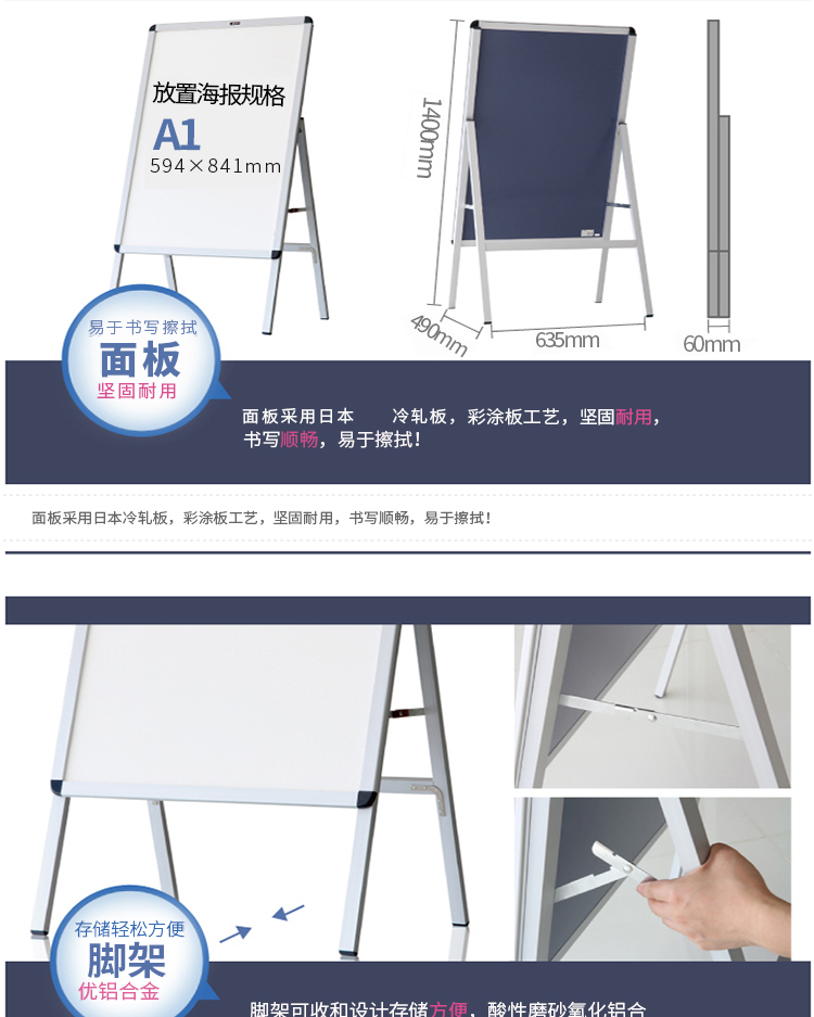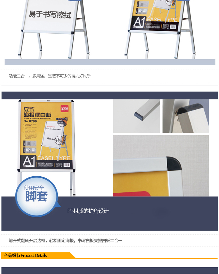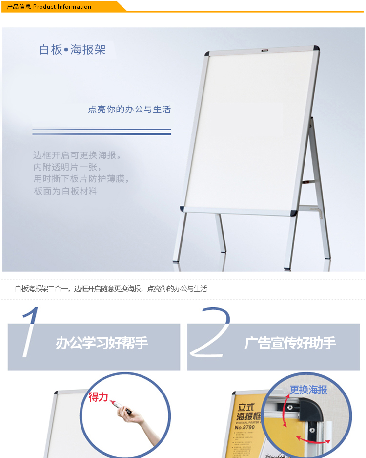 商品名称:得力8790立式海报框白板594*841(银色)(块)