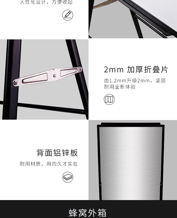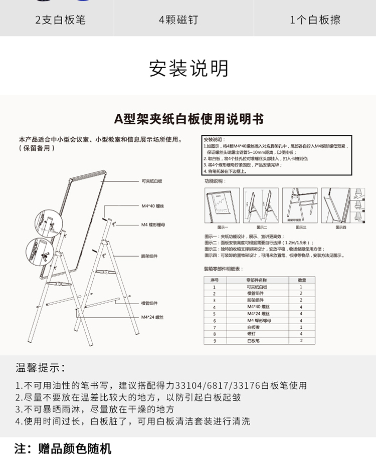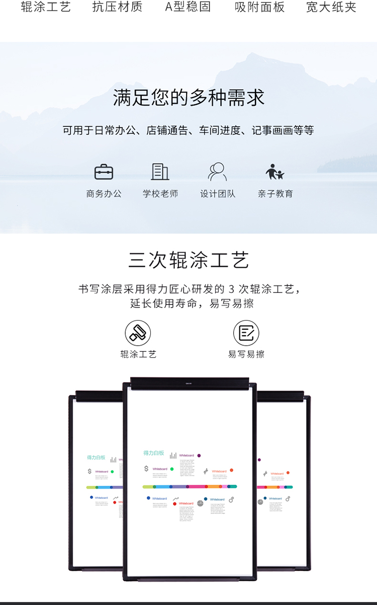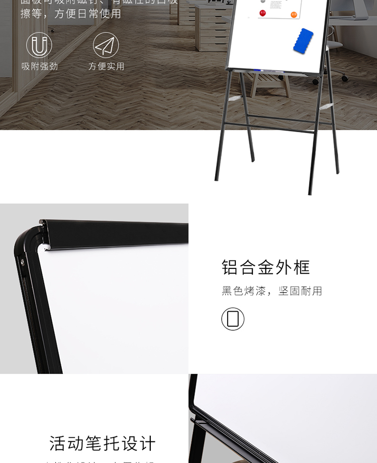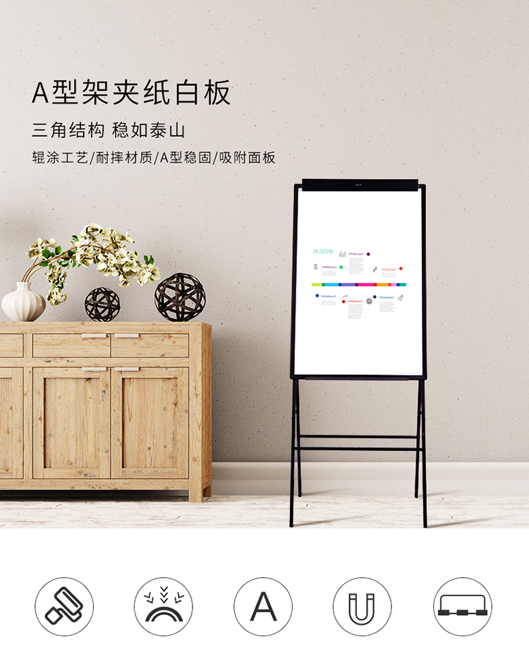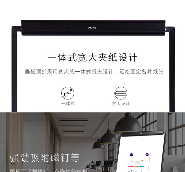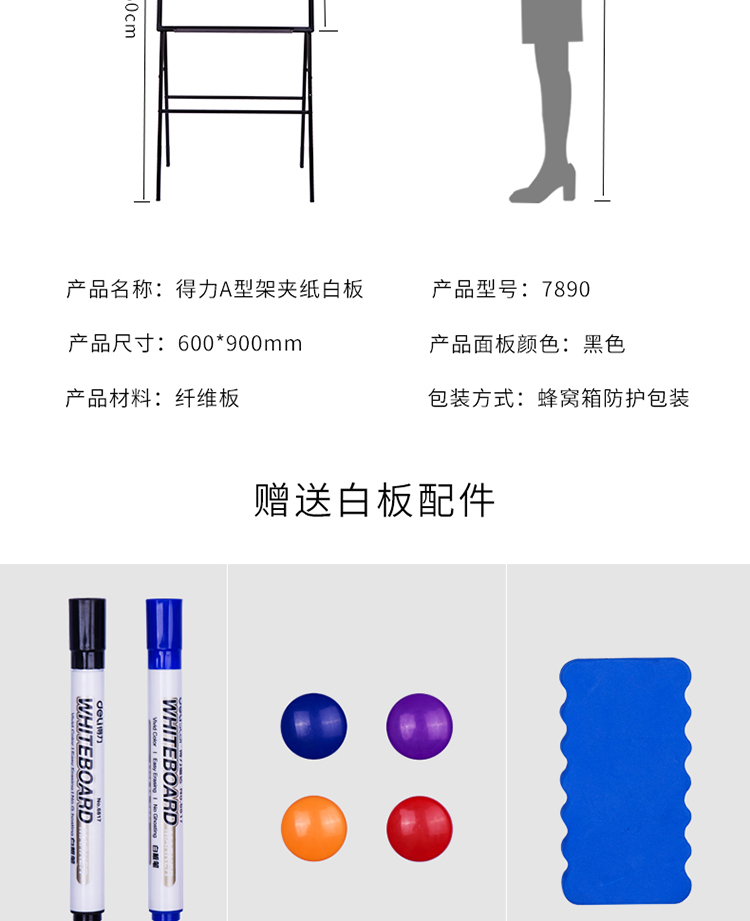 商品名称:得力7890_A型架夹纸白板900*600mm(黑)(块)