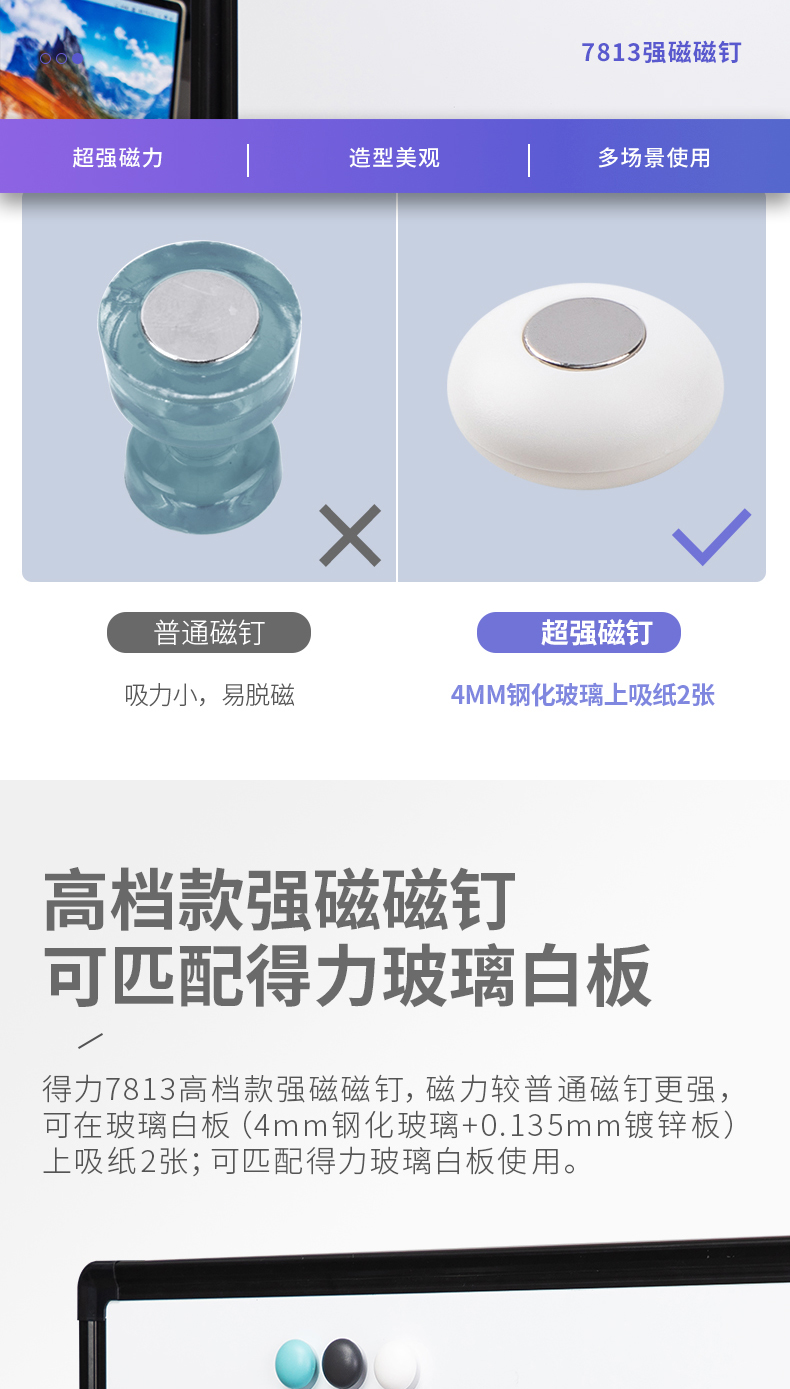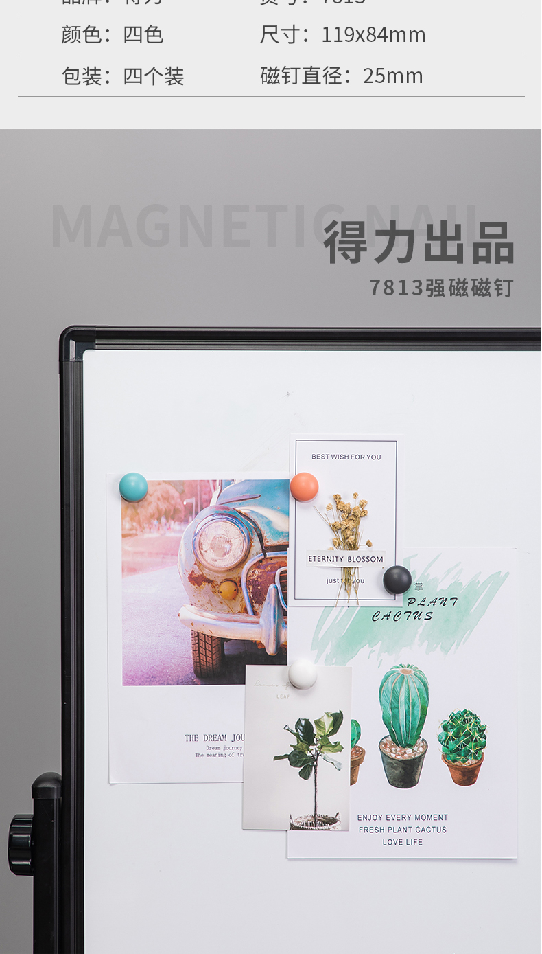商品名称:得力7813强磁磁钉25*13mm(混)(卡)