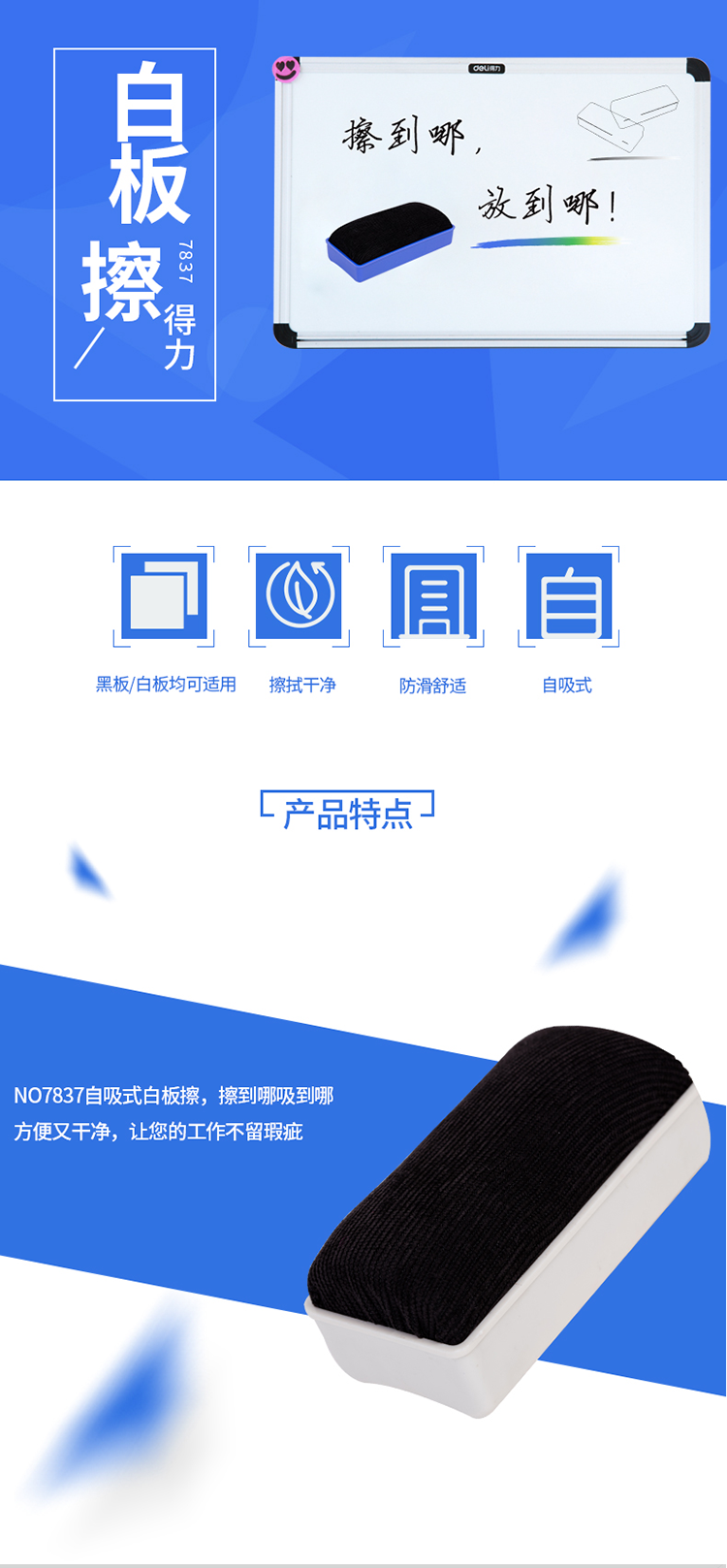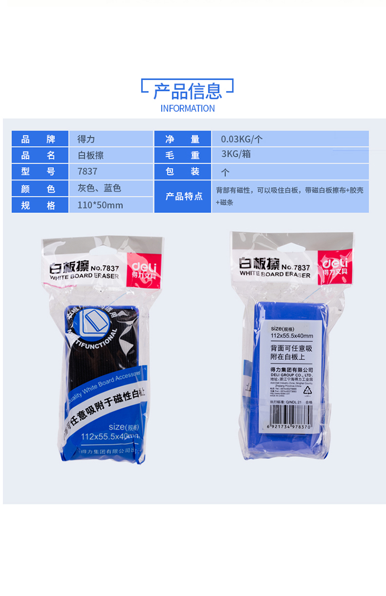 商品名称:得力7837白板擦110*56*40(混)(只)