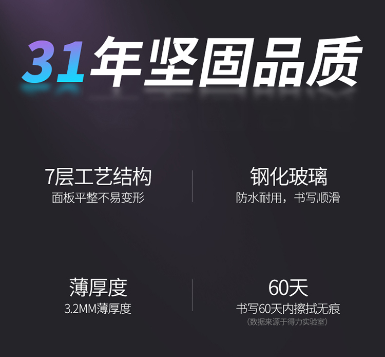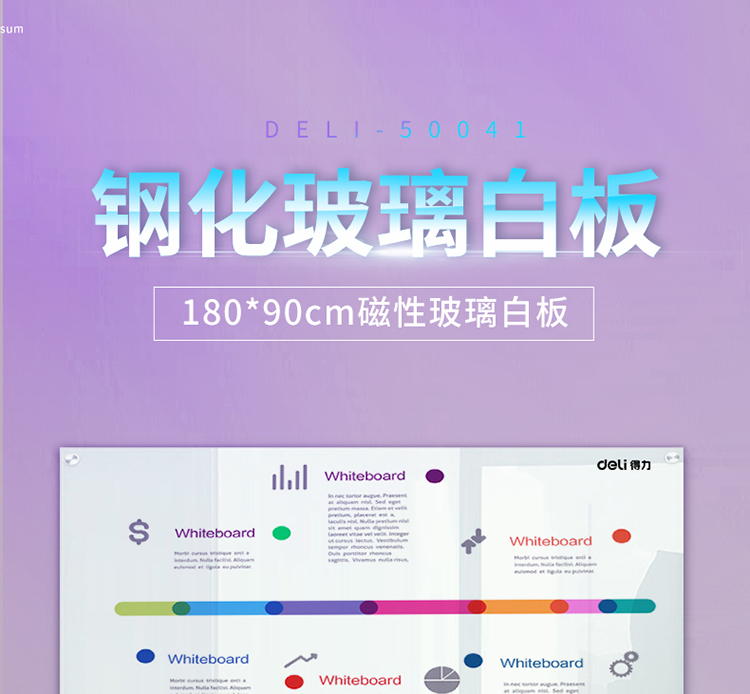 商品名称:得力50041磁性玻璃白板1800*900mm(白色)