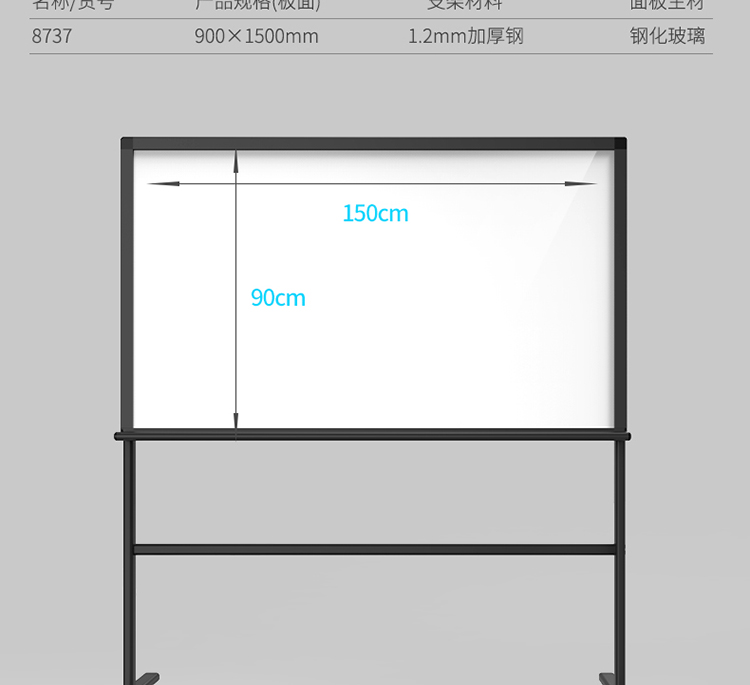 商品名称:得力8737_H型架磁性玻璃白板900*1500mm(灰色)