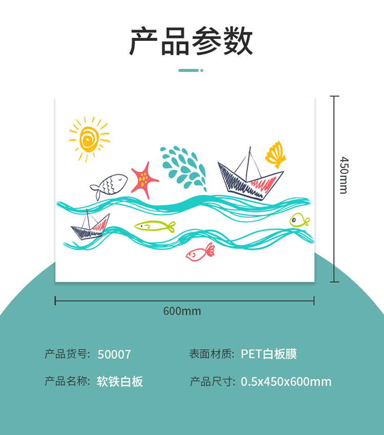 商品名称:得力50007软铁白板600*450*0.5mm(带胶)(白色)