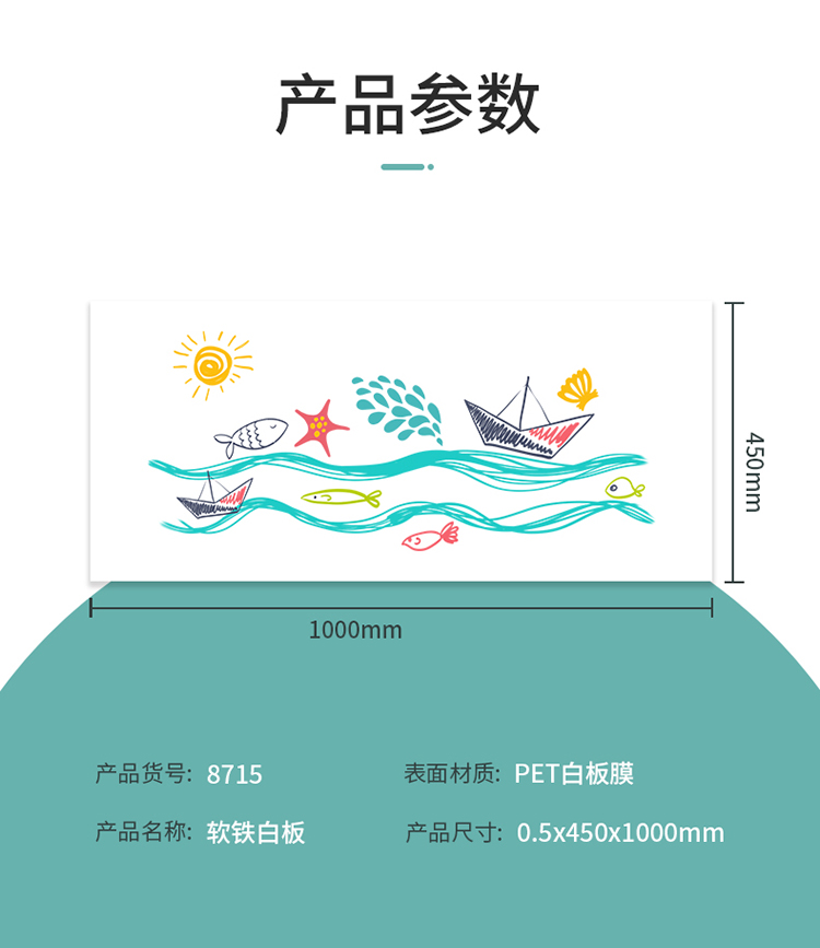 商品名称:得力8715软铁白板0.5*450*1000mm(带胶)(白)