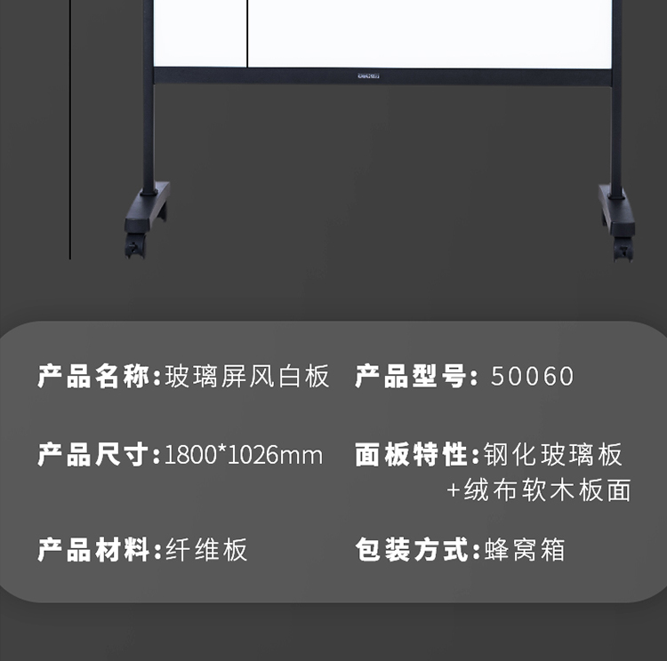 商品名称:得力50060移动屏风玻璃板1464*1026mm(黑色)(块)