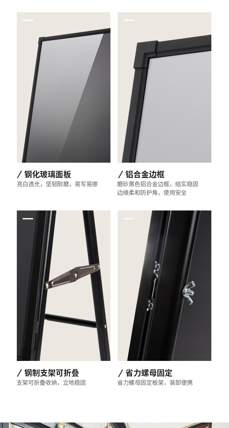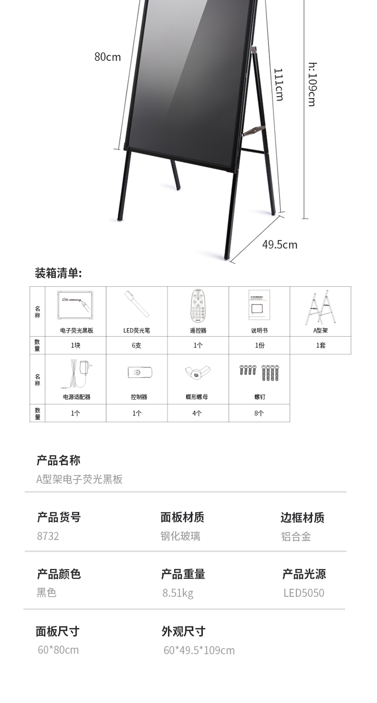 商品名称:得力8732_A型架电子荧光黑板60*80cm(黑色)