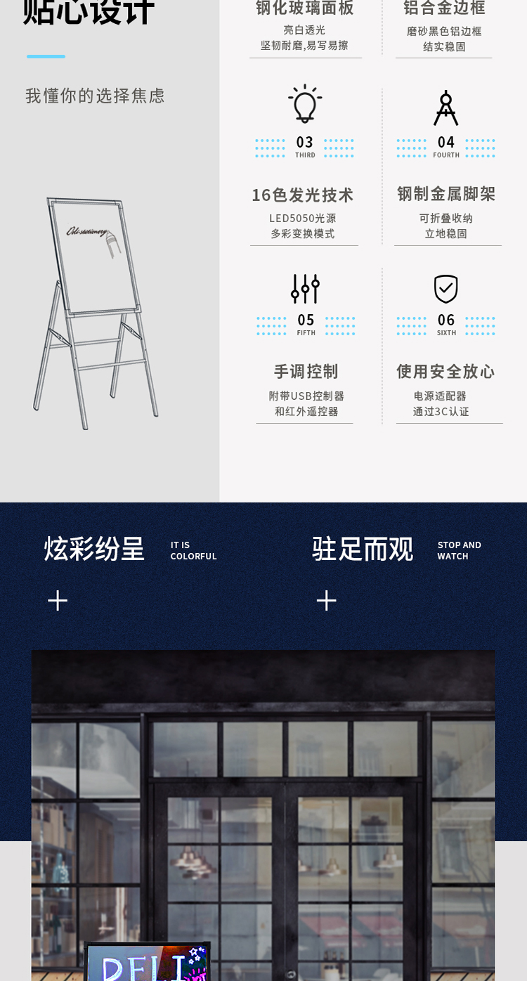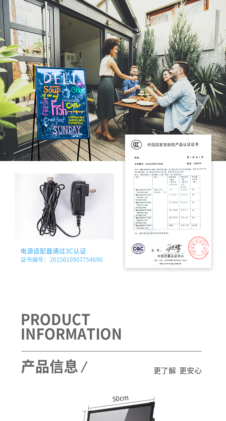 商品名称:得力8733_A型架电子荧光黑板50*70cm(黑色)