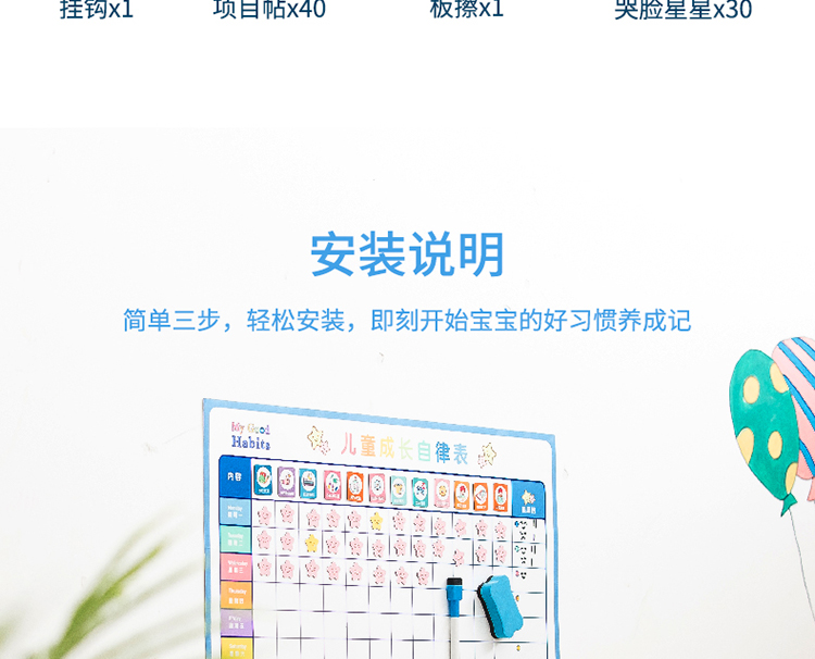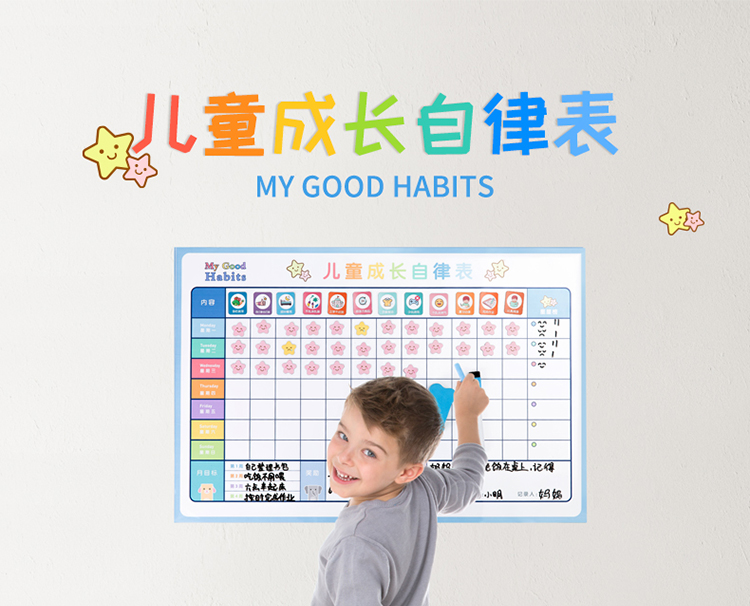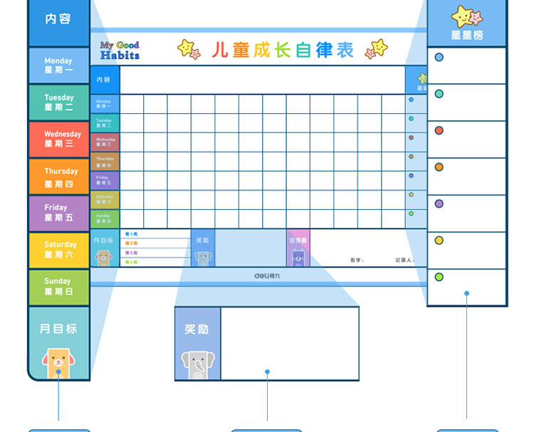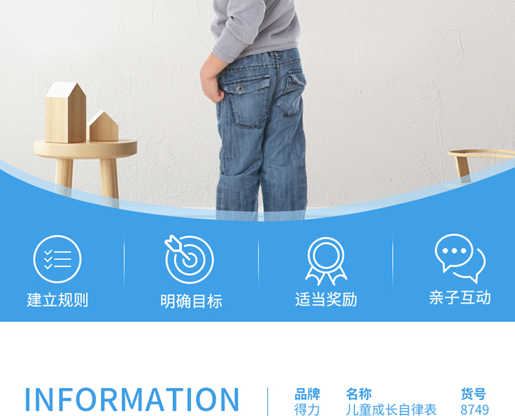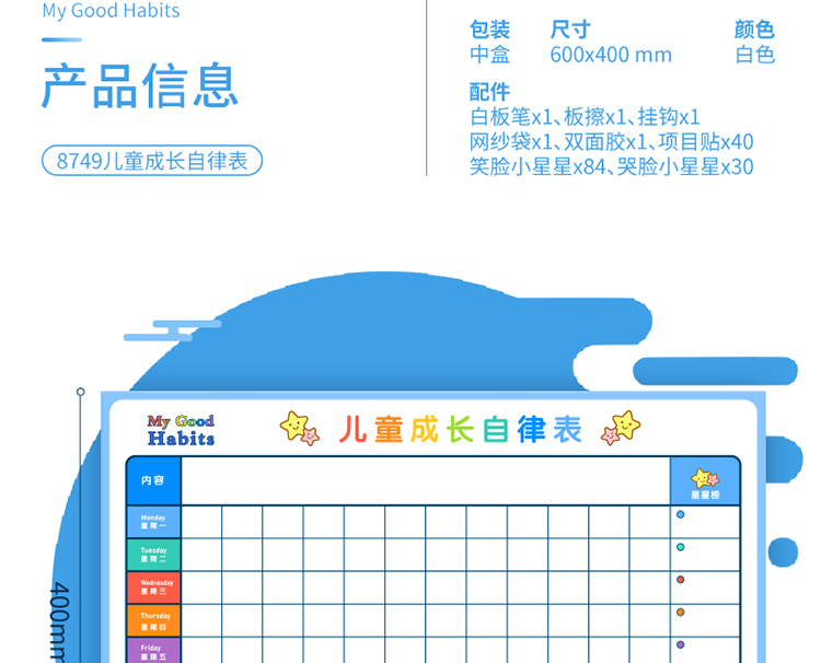 商品名称:得力8749儿童成长自律表600*400mm(蓝色)
