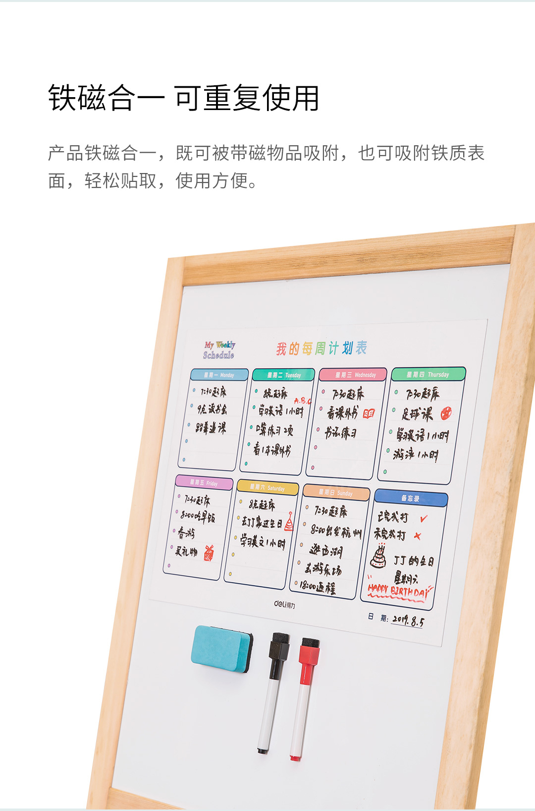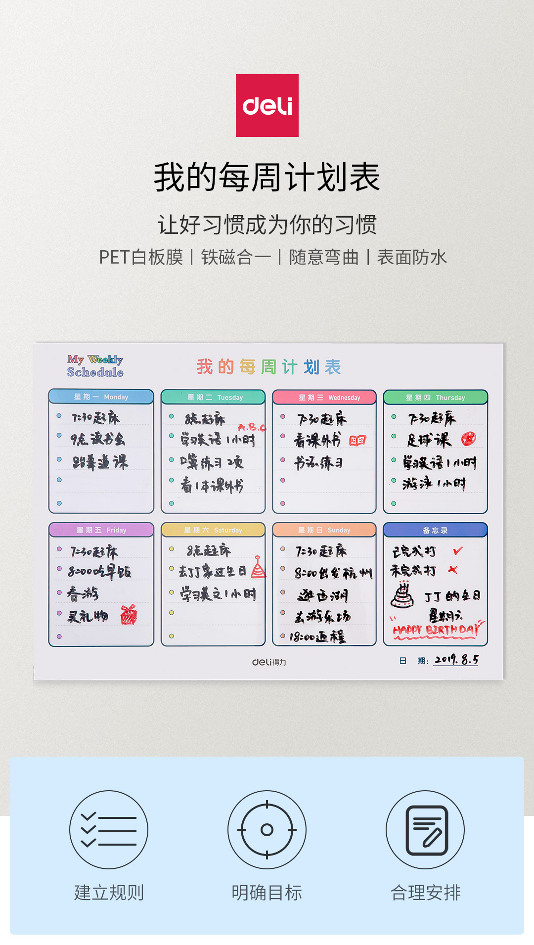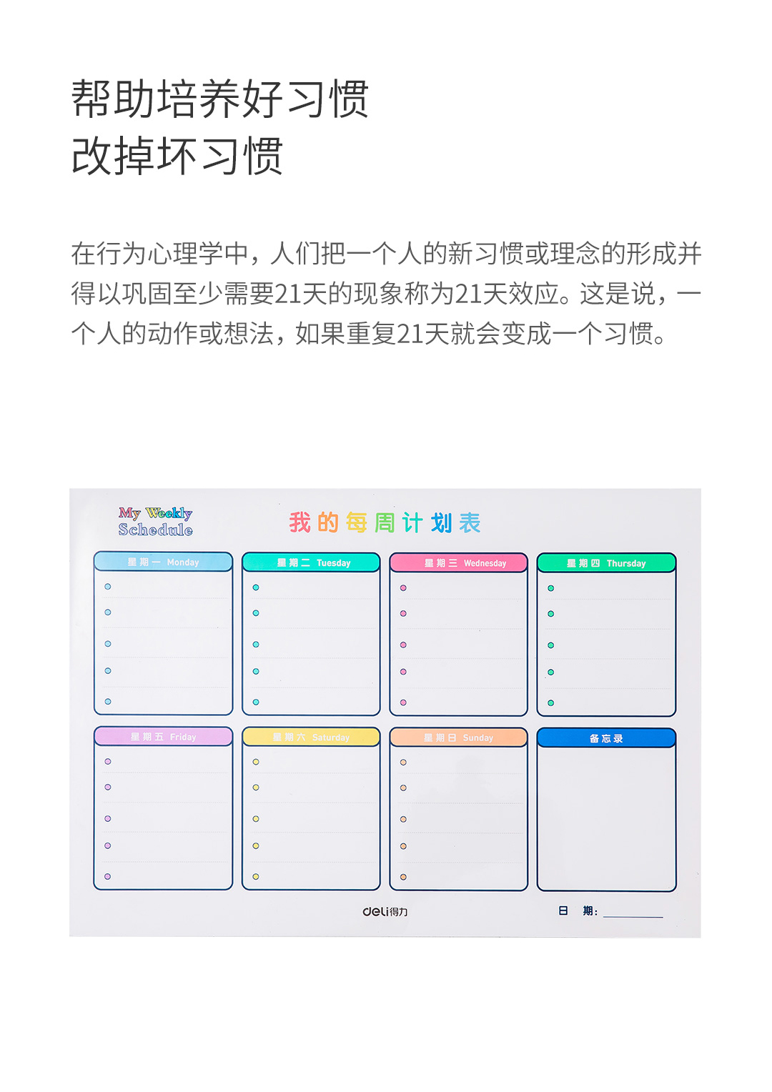 商品名称:得力8758周计划表420*300mm(白色)(块)