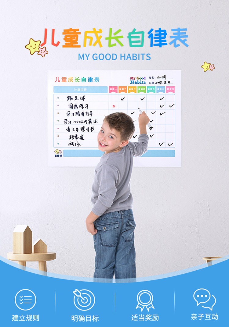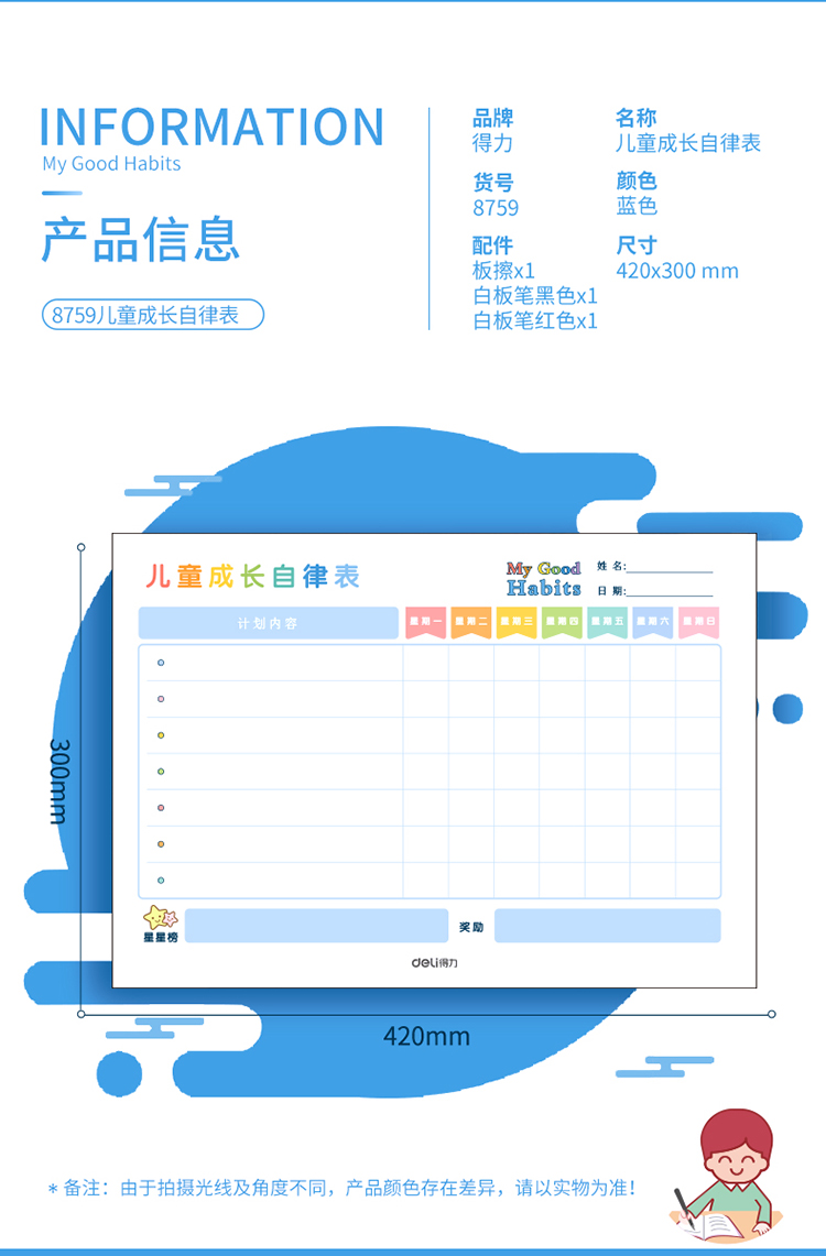 商品名称:得力8759儿童成长自律表420*300mm(蓝色)(块)