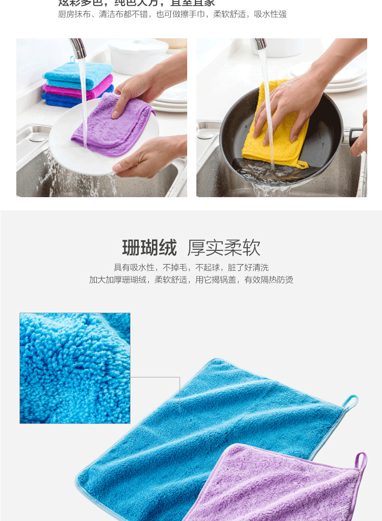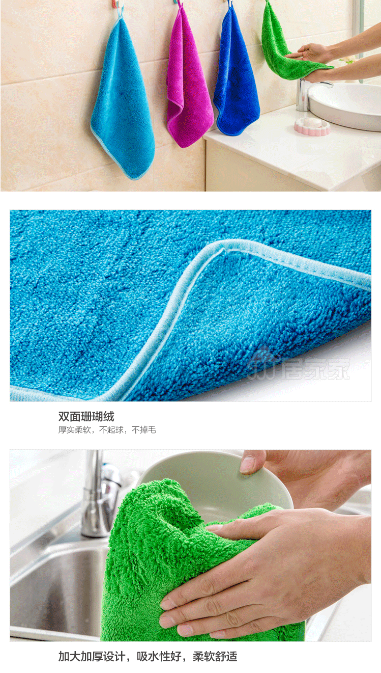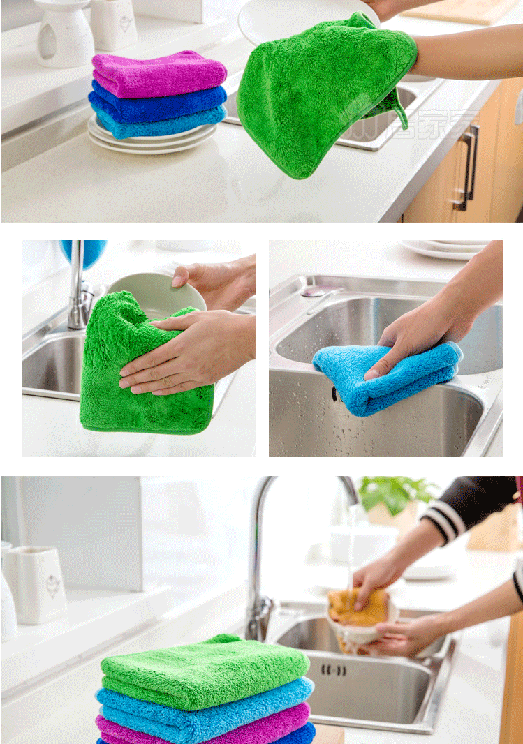商品名称:加厚珊瑚绒不沾油抹布 不掉毛擦手巾吸水毛巾 颜色随机30*40cm(5条装)