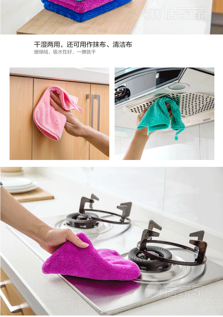 加厚珊瑚绒不沾油抹布 不掉毛擦手巾吸水毛巾 颜色随机30*40cm(5条装)