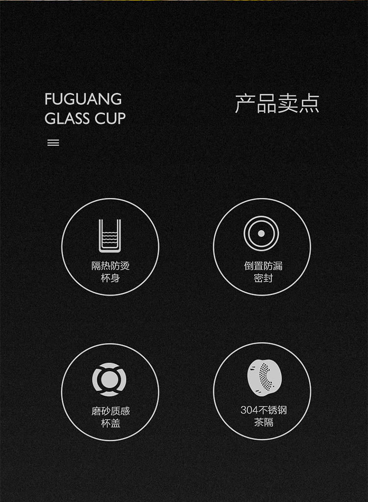商品名称:富光 双层玻璃杯 304不锈钢茶隔水杯子 320ML雅黑