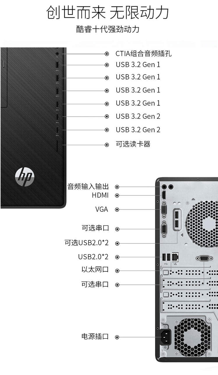 商品名称:惠普(HP)288 Pro G6 MT商用办公电脑台式机 I5-10500/16G/1T/win10/21.5寸显示器