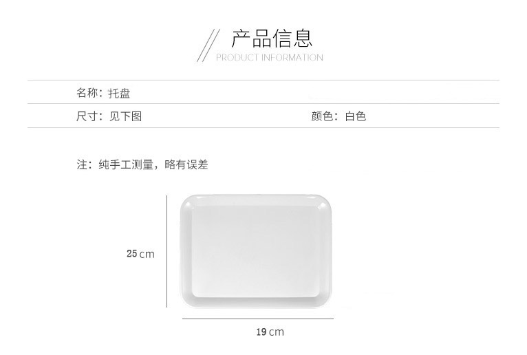 商品名称:小号长条形托盘 25*18cm