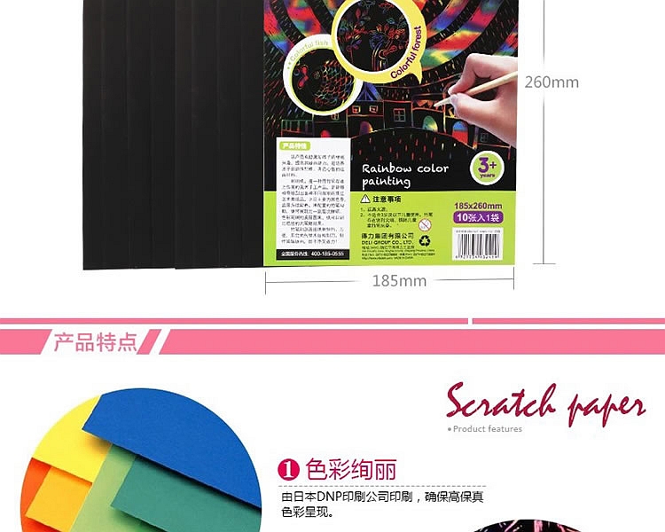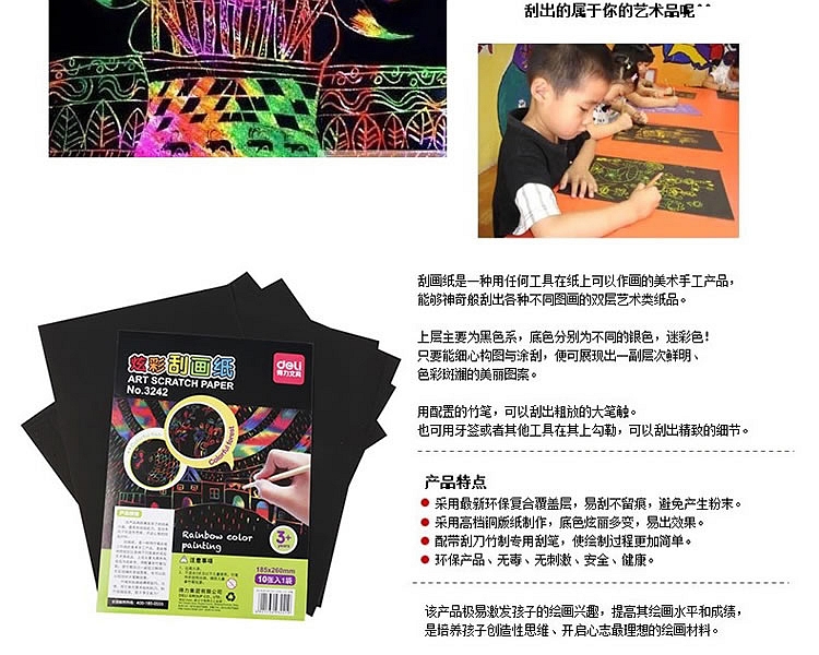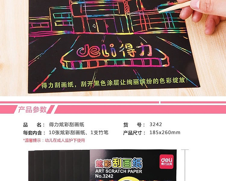 商品名称:得力3242炫彩刮画纸(黑)(10张/袋)
