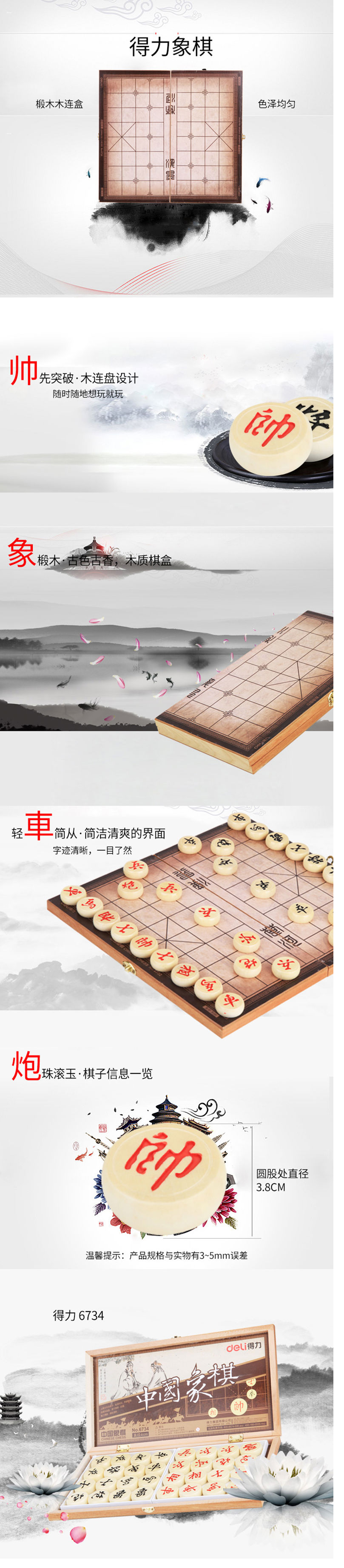 商品名称:得力(deli) 中国象棋套装折叠棋盘 标准原木色棋子4.0 大号 6734