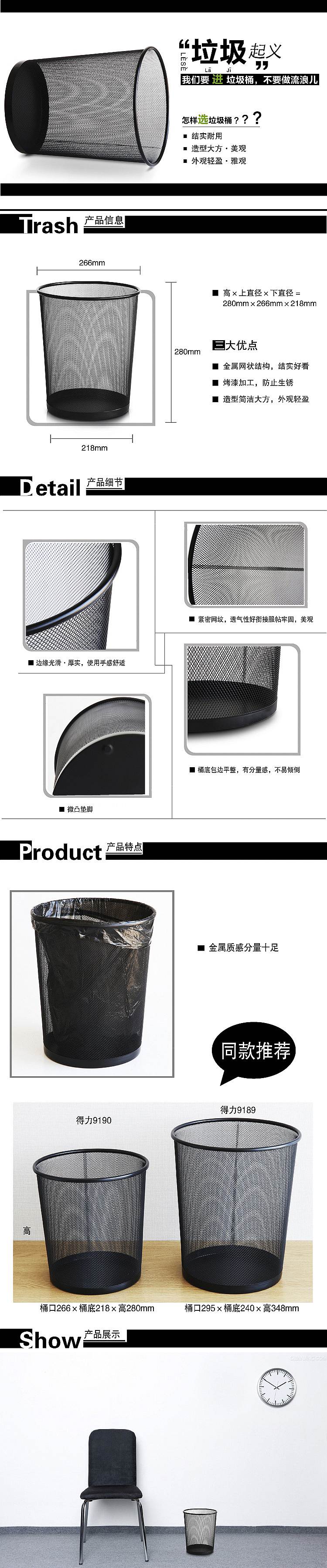 商品名称:得力(deli)φ26.6cm中号金属网状圆纸篓 办公垃圾桶 黑色9190