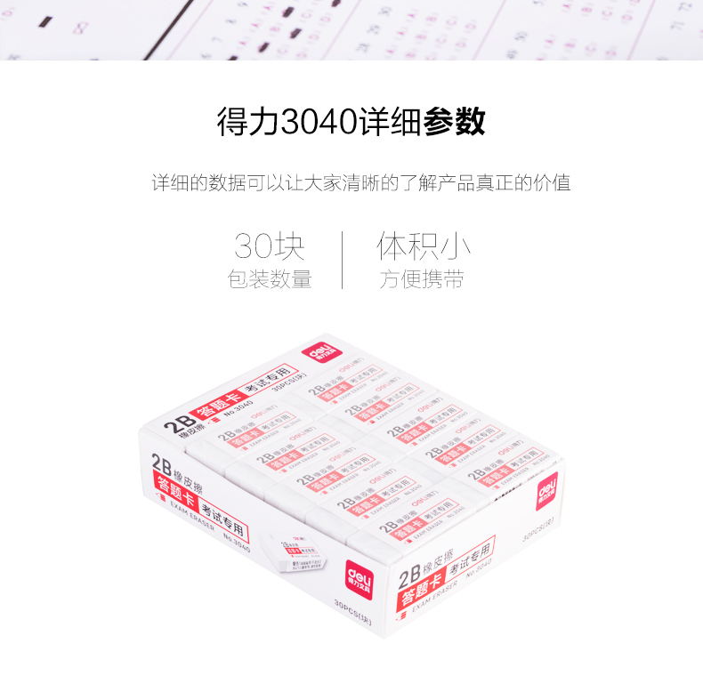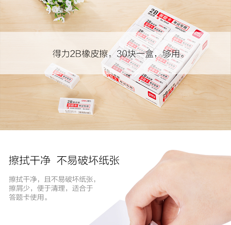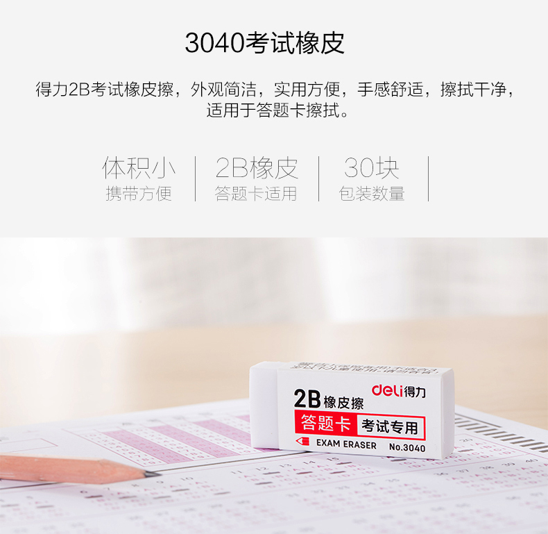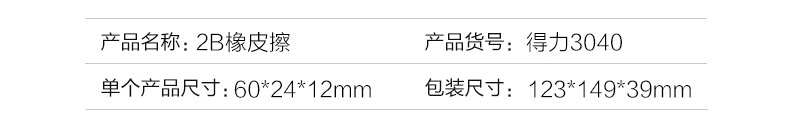 商品名称:得力考试专用2B橡皮擦 3040