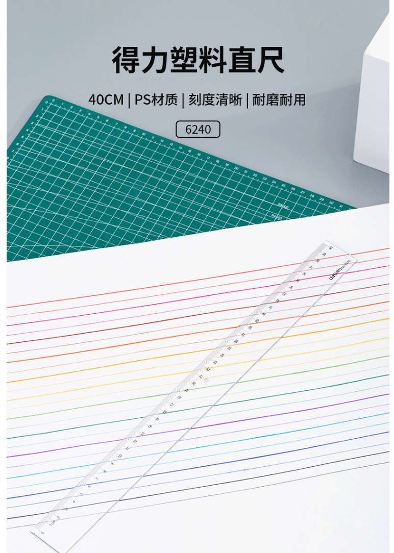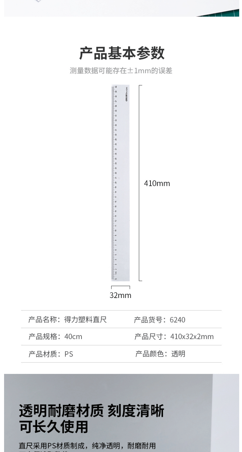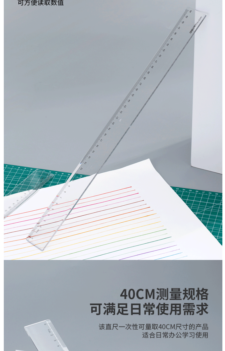 商品名称:得力(deli)办公通用直尺40cm 测量绘图尺子 6240
