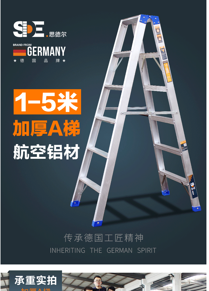 商品名称:德国SDE.思德尔 折叠人字梯加厚铝合金梯子 工程用双面梯合页梯【1.75米】