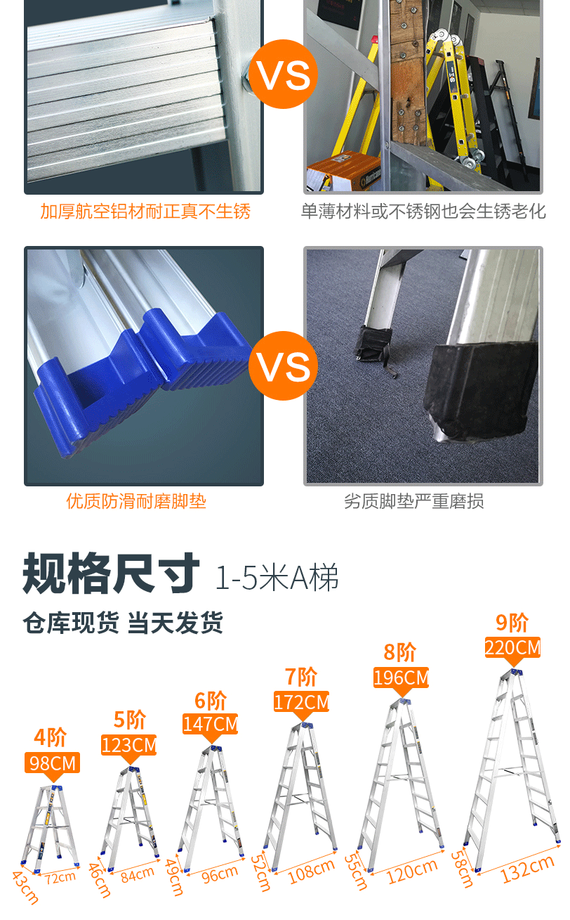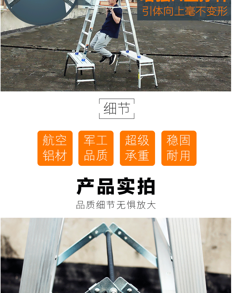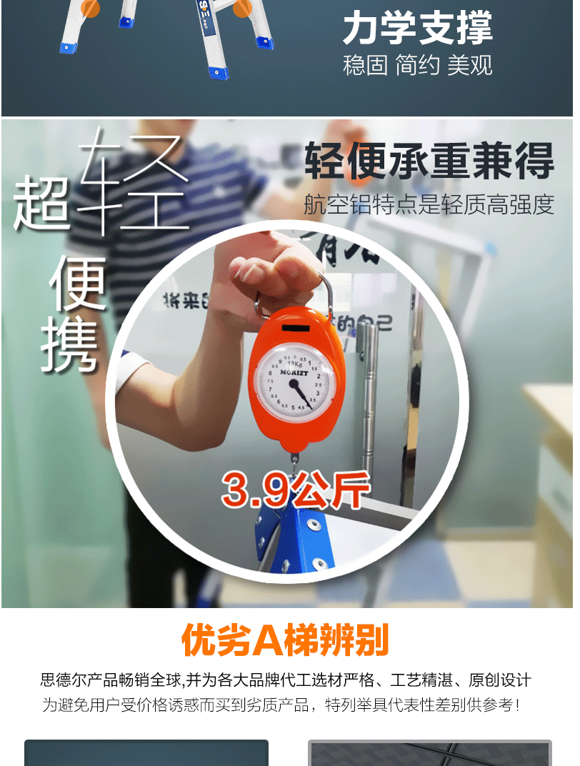 商品名称:德国SDE.思德尔 折叠人字梯加厚铝合金梯子 工程用双面梯合页梯【3.5米】