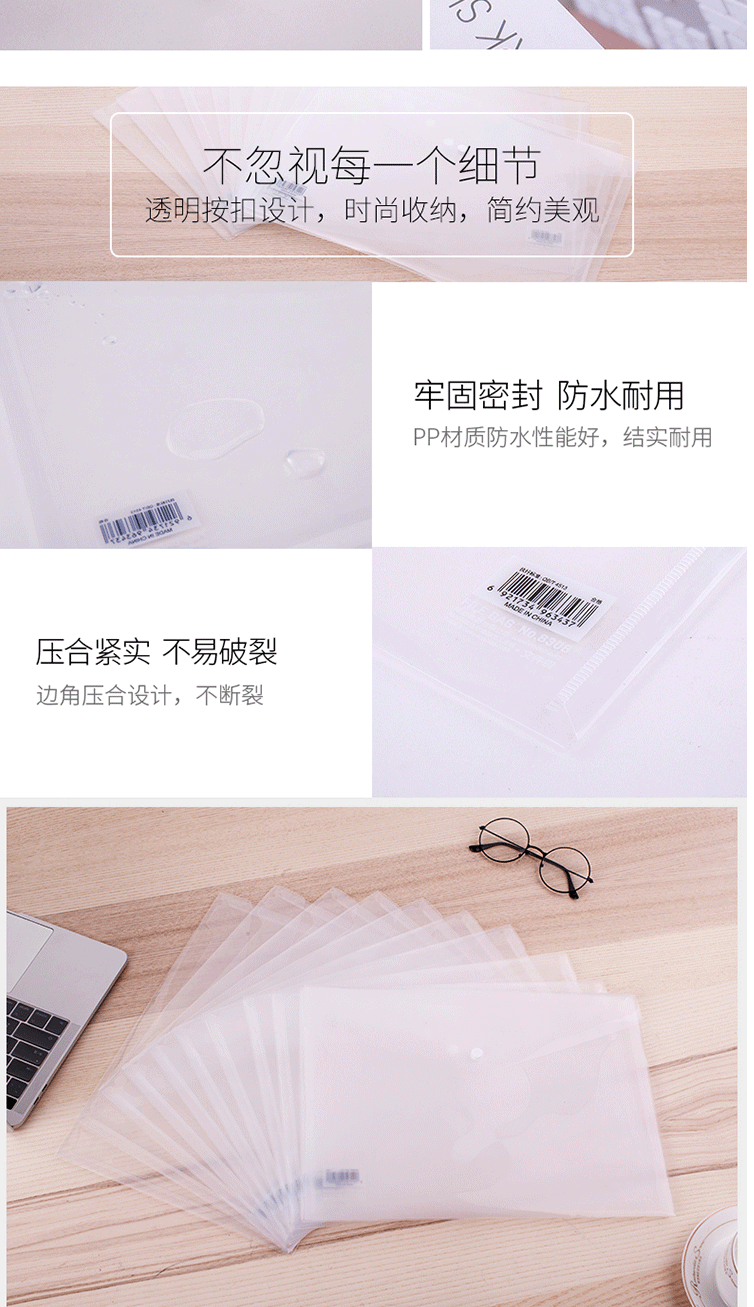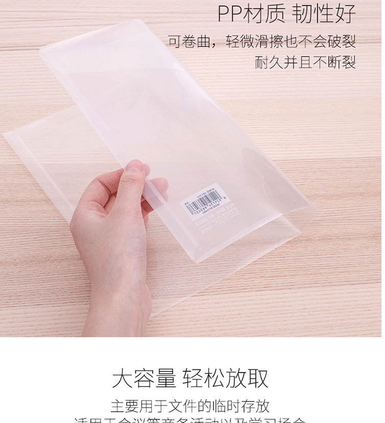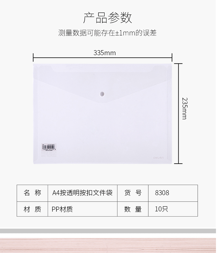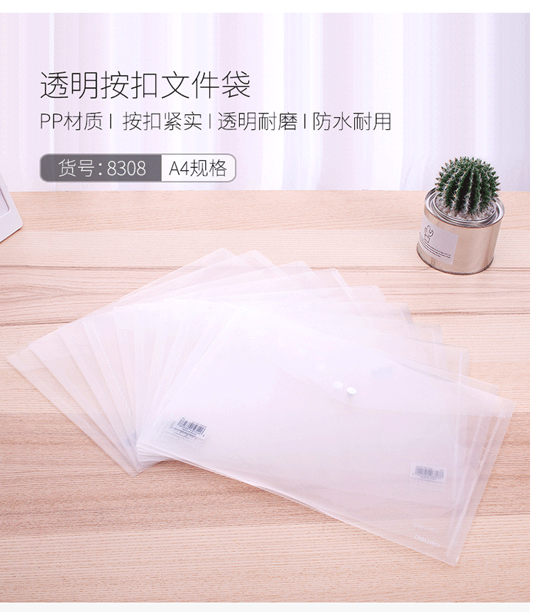 商品名称:得力(deli)A4透明文件袋 按扣资料袋 塑料档案袋 8308