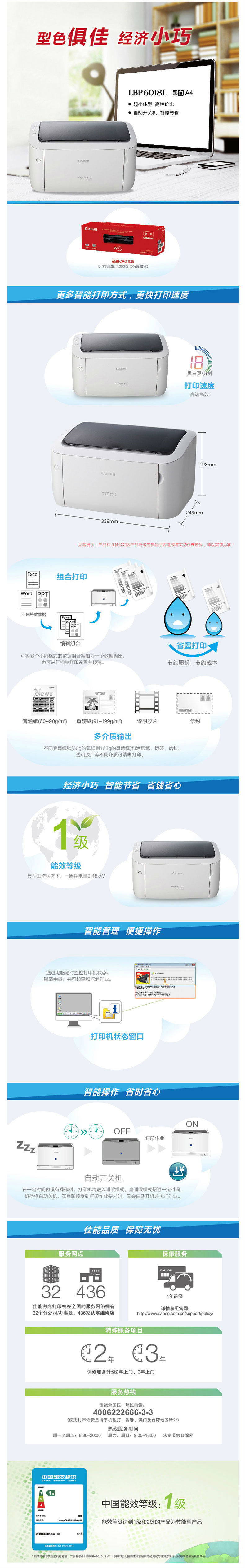 商品名称:佳能(CANON)LBP6018L黑白激光打印机 A4幅面 18页/分钟 一体式硒鼓