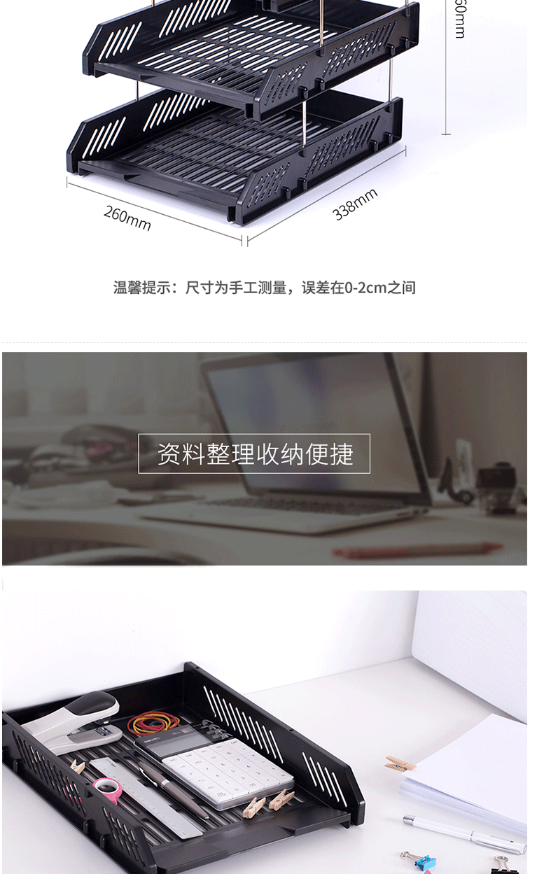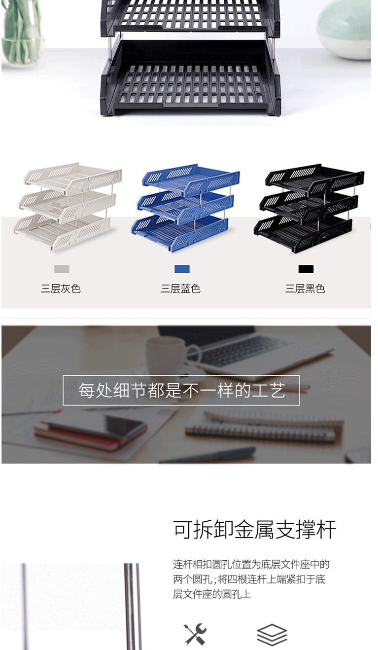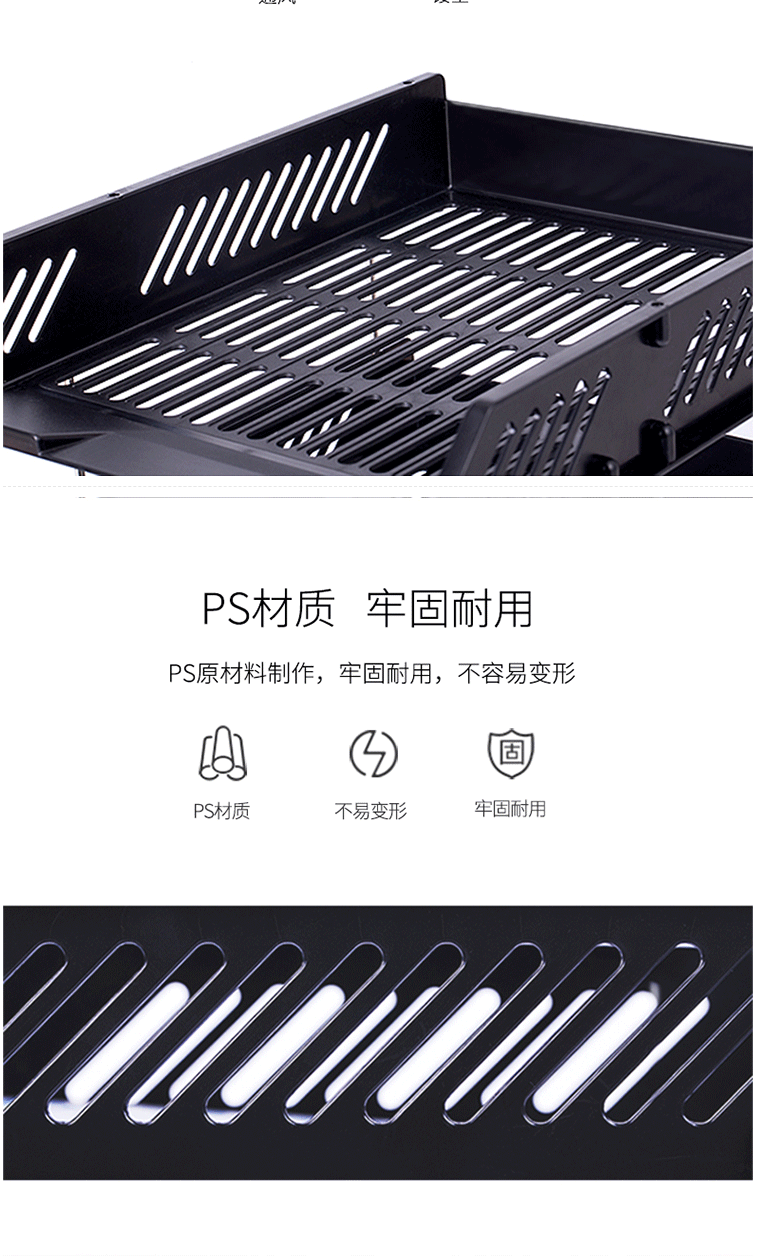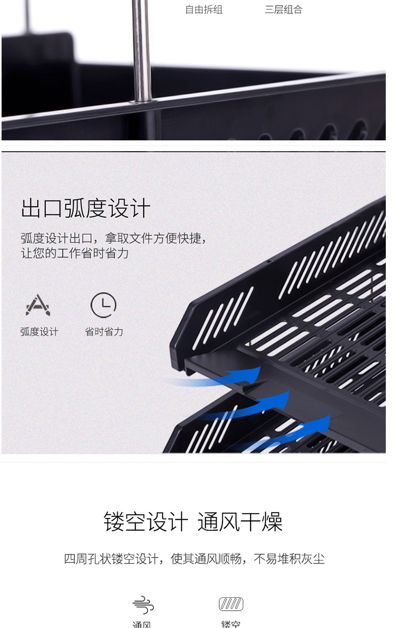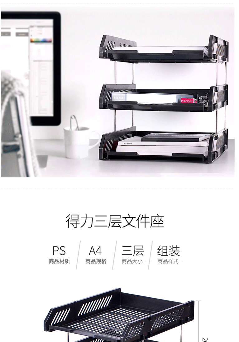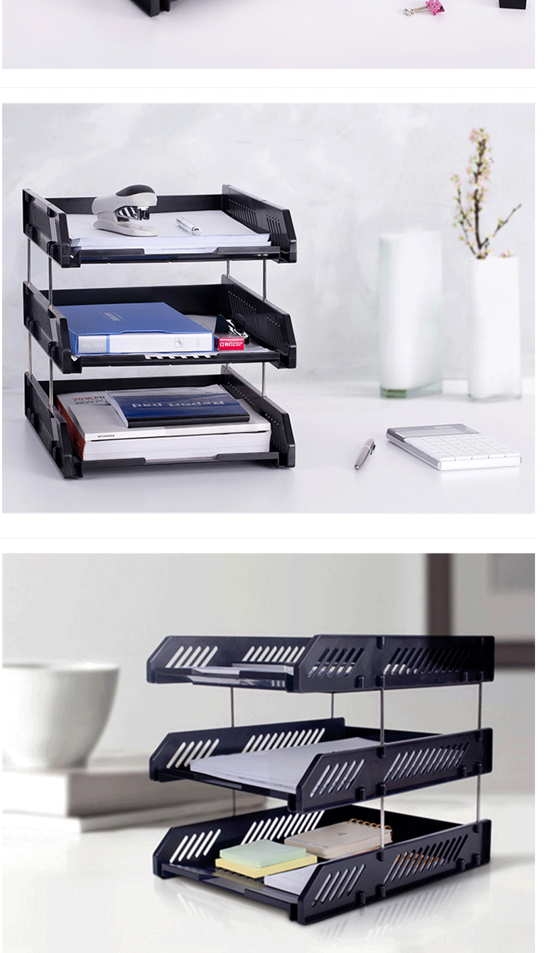 商品名称:得力(deli)三层镂空收纳文件座 自由拆卸组装三层文件盘 9209黑色