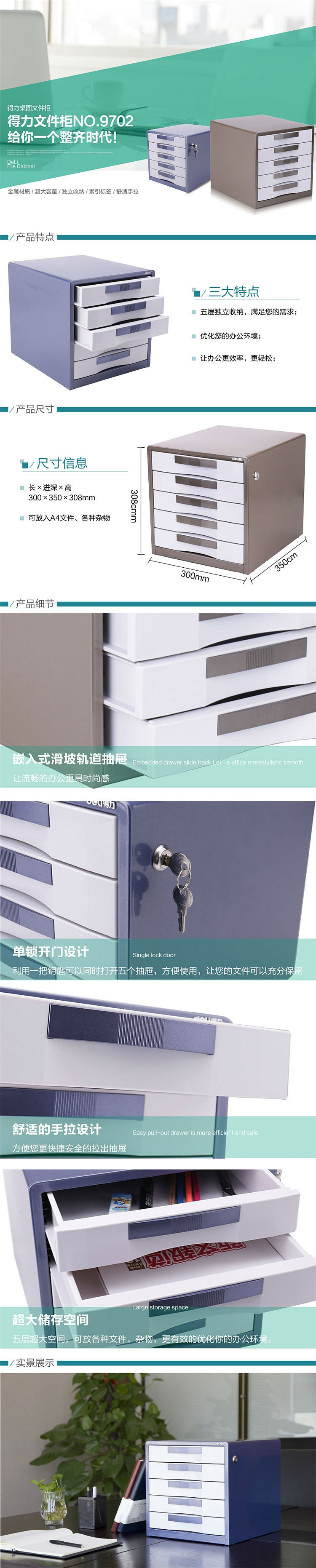 商品名称:得力(deli)桌面金属5层文件柜 抽屉式文件柜 9702 (蓝色)