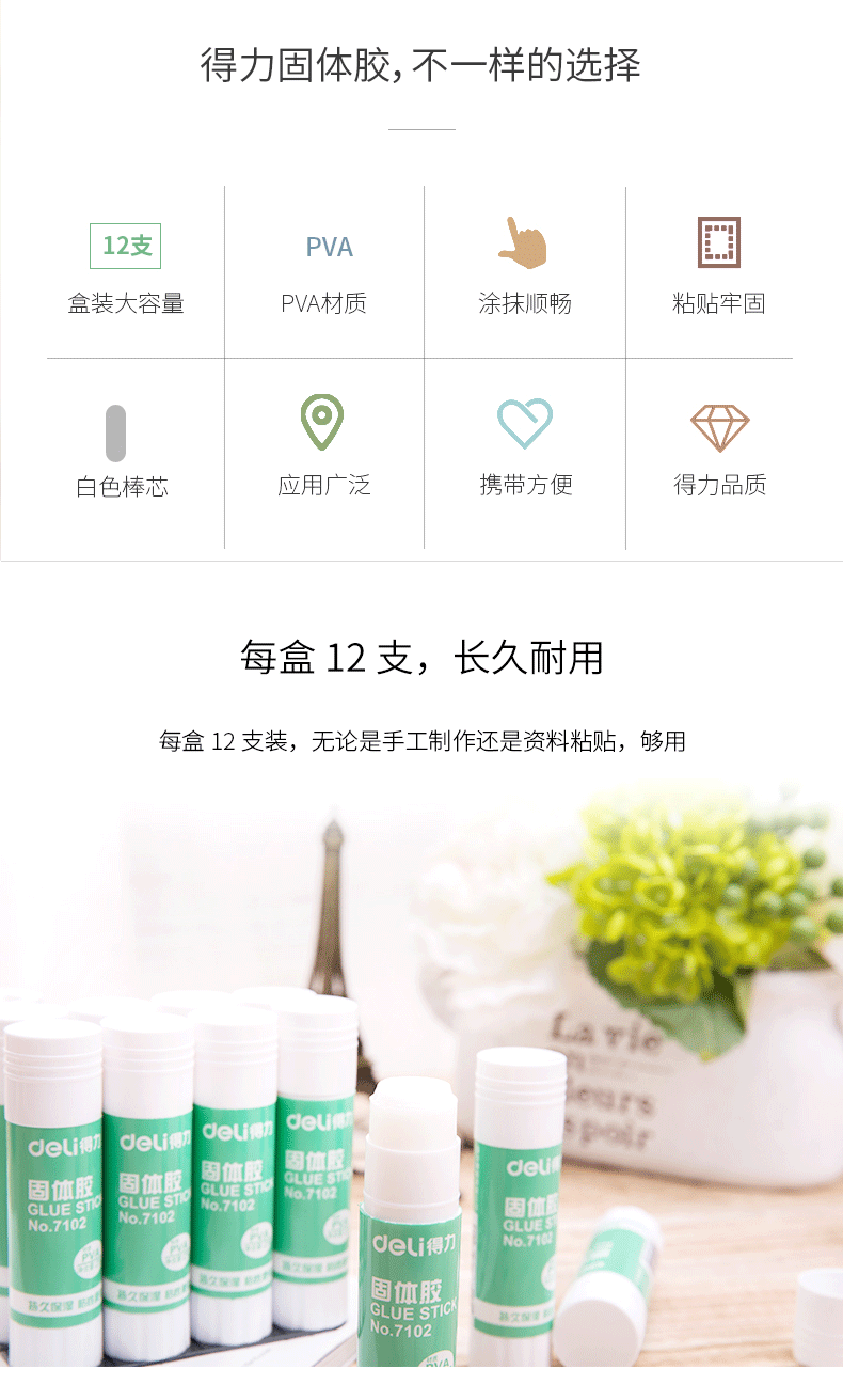 商品名称:得力(deli)21g高粘度PVA固体胶水/胶棒 7102(单位:个)
