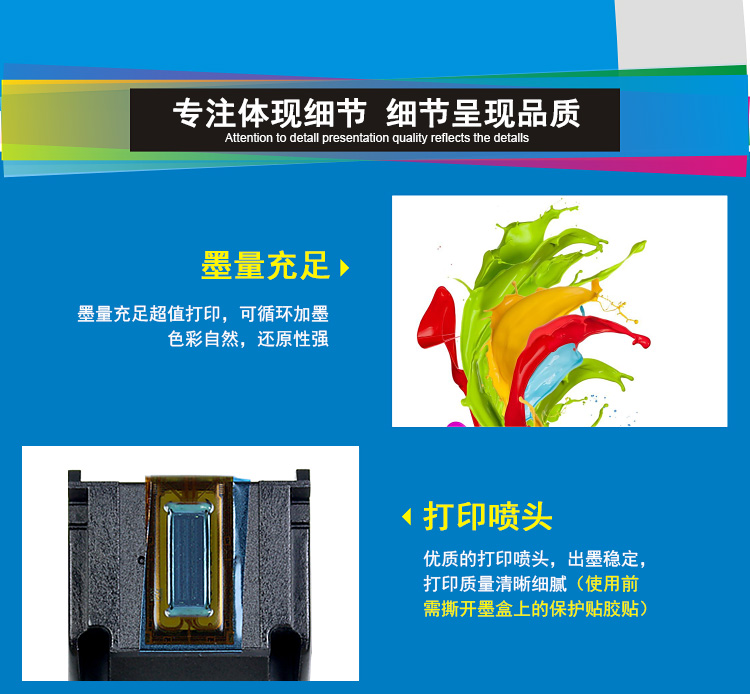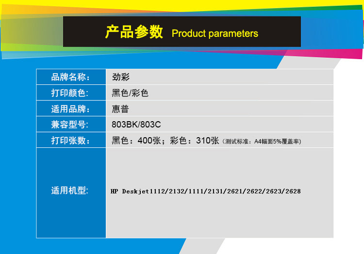 商品名称:劲彩 803XL (升级版) 彩色墨盒 适用惠普Deskjet1112/2132/1111/2131/2621/2622/2623/2628 彩色