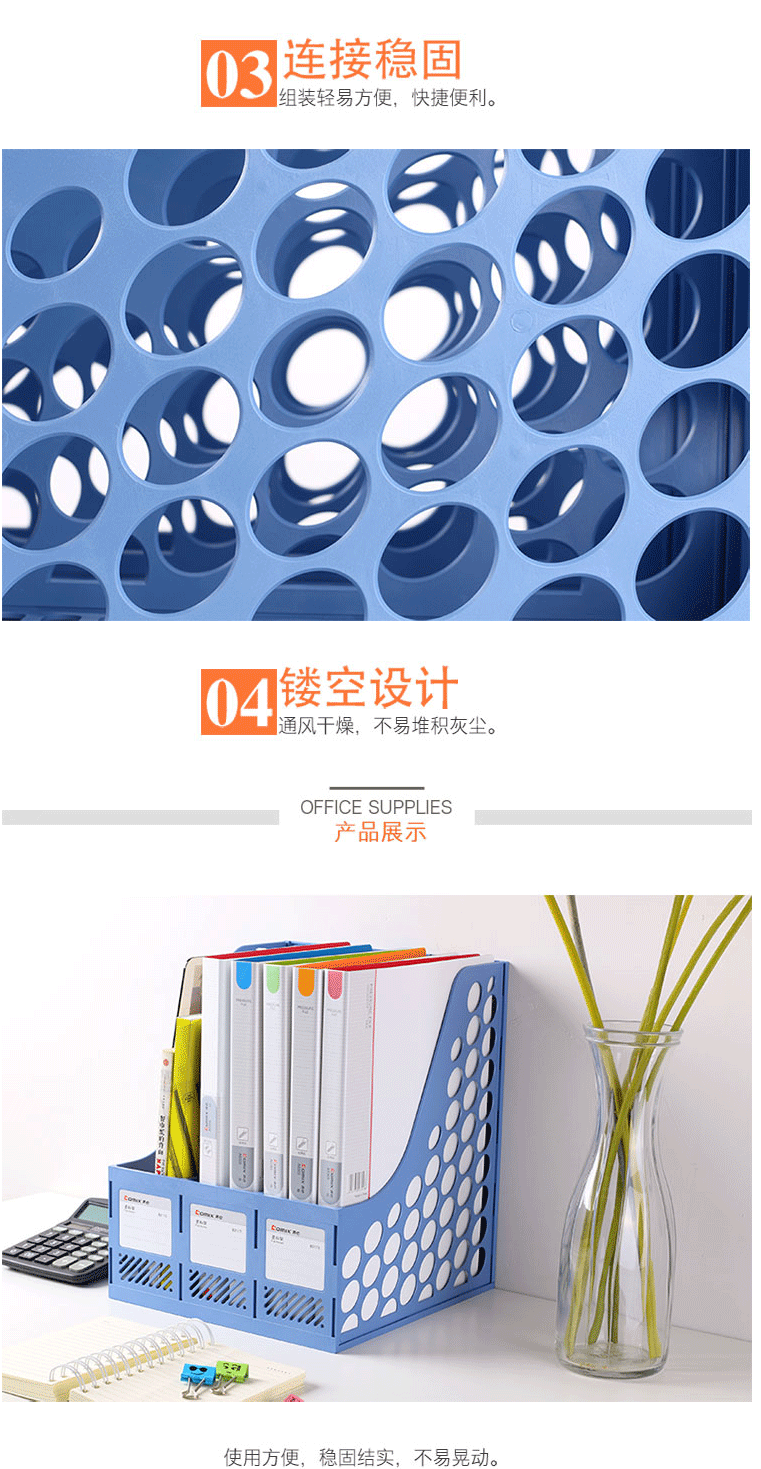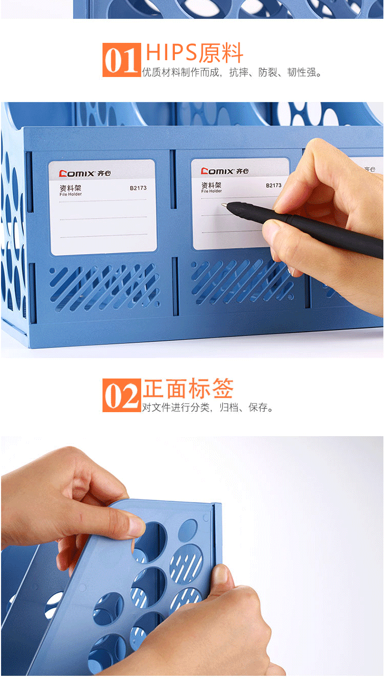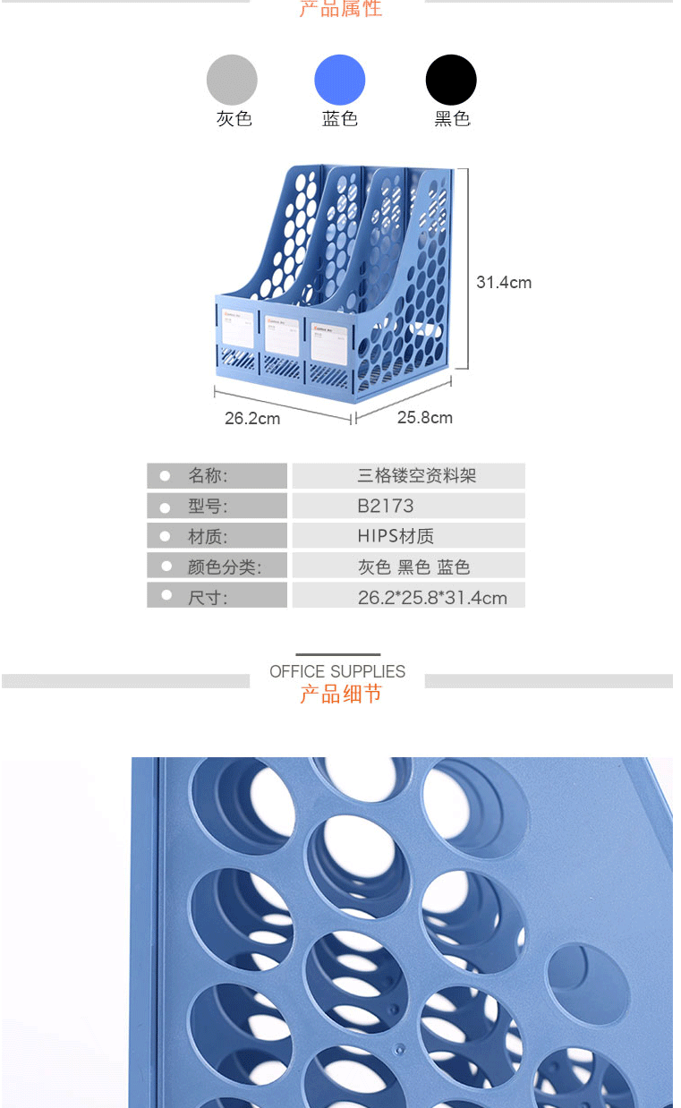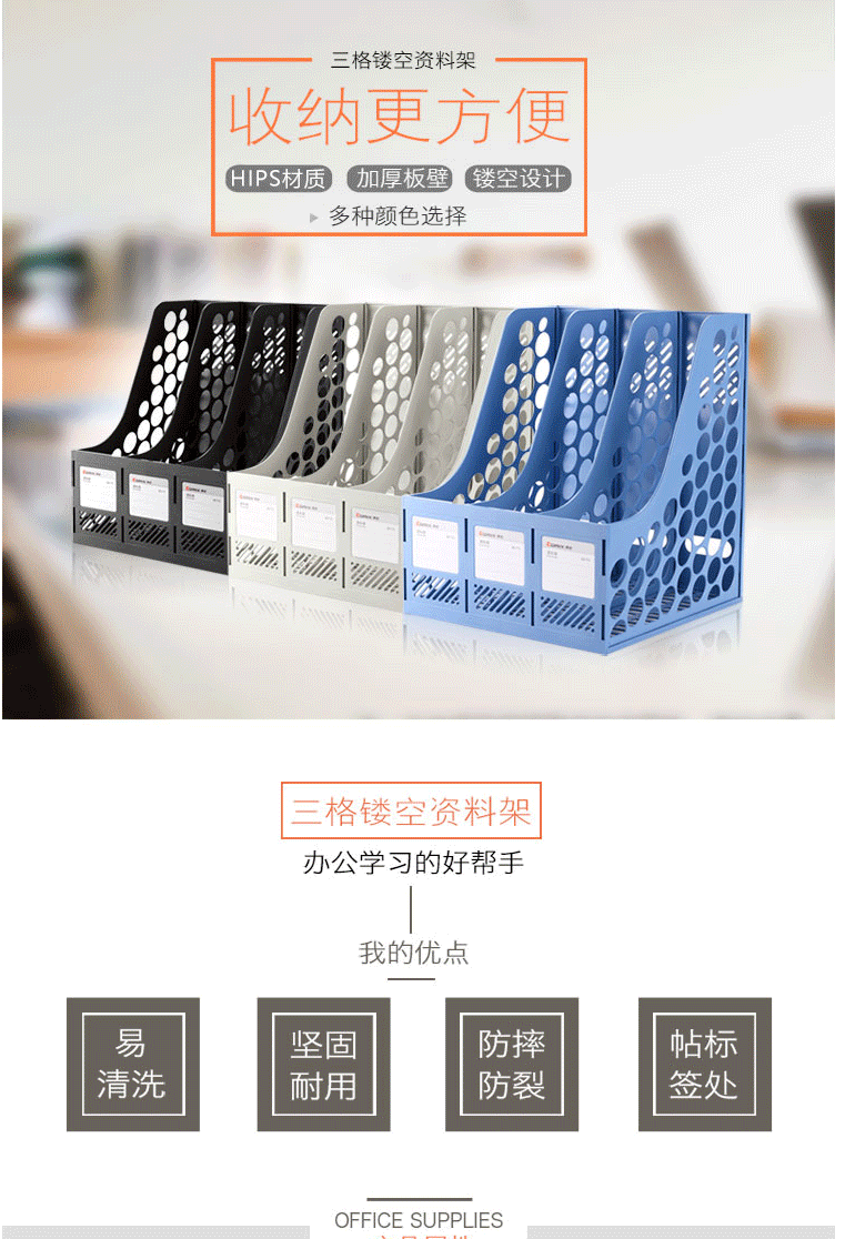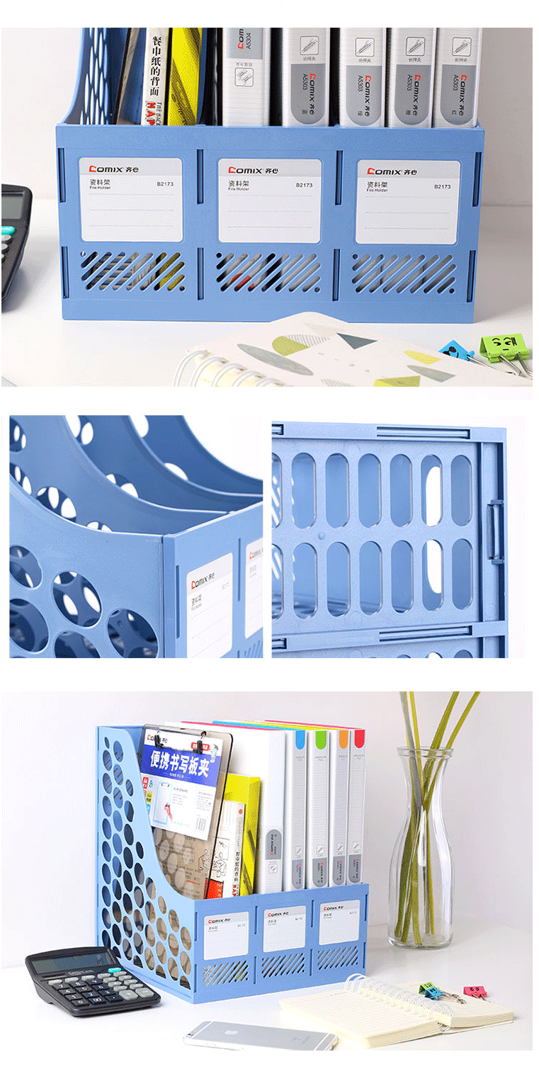 商品名称:齐心(Comix) 三联桌面文件框 三栏带标签文件栏/资料框 灰色B2173