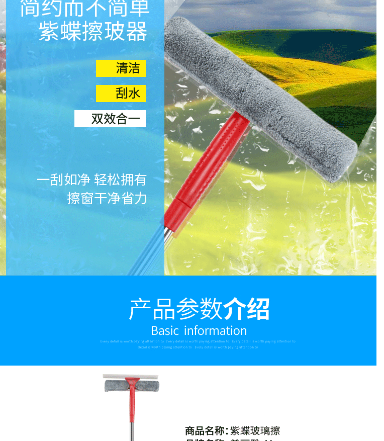 商品名称:美丽雅 玻璃刮擦窗器 清洁擦玻璃神器刮水器洗刮合一 051867