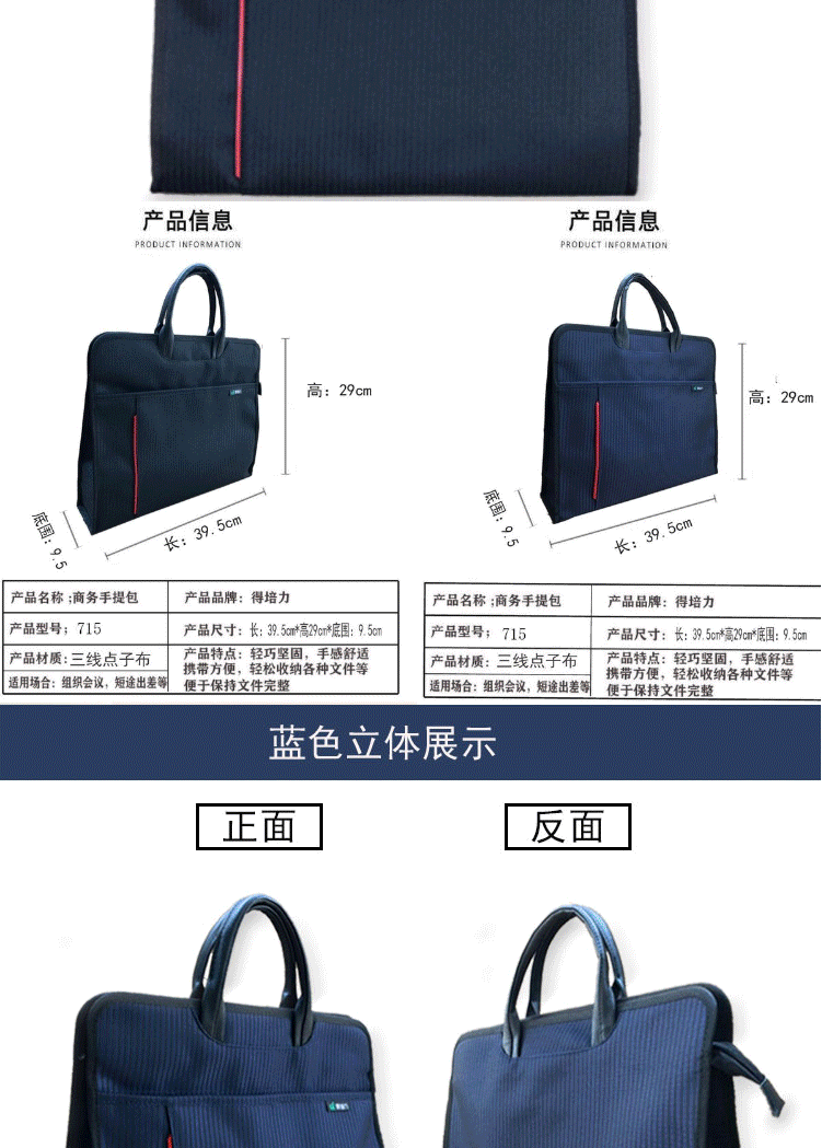 商品名称:得培力D-715商务手提式收纳袋 帆布防水文件袋手拎