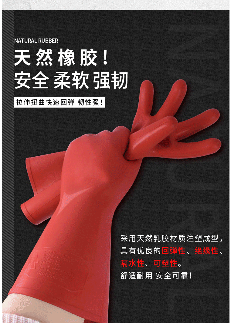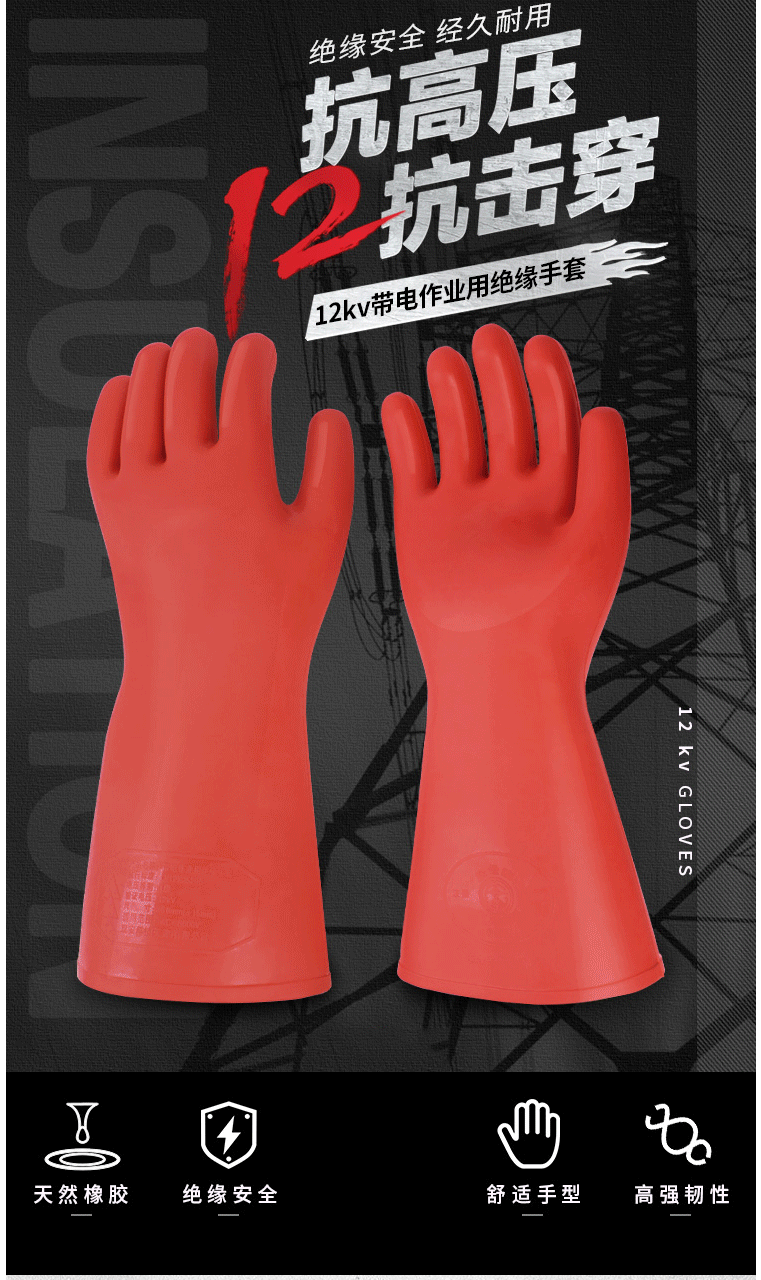 商品名称:绝缘手套 12KV带电作业用 高压防触电橡胶手套电工电力手套