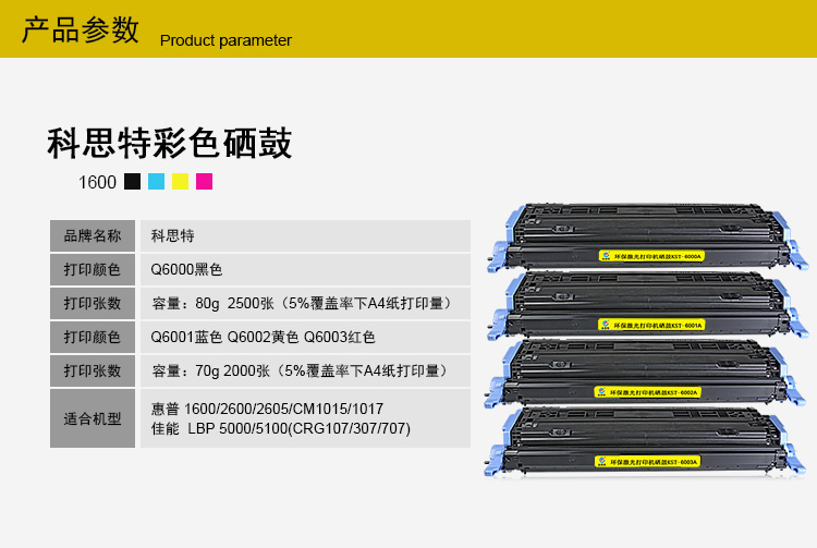 商品名称:科思特Q6003A硒鼓 适用惠普1600 2600 2605 CM1015 红色 专业版