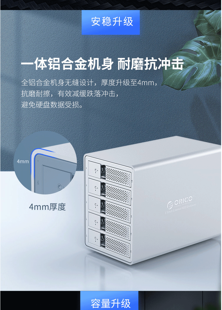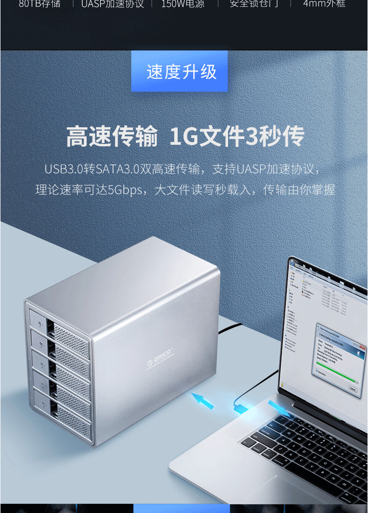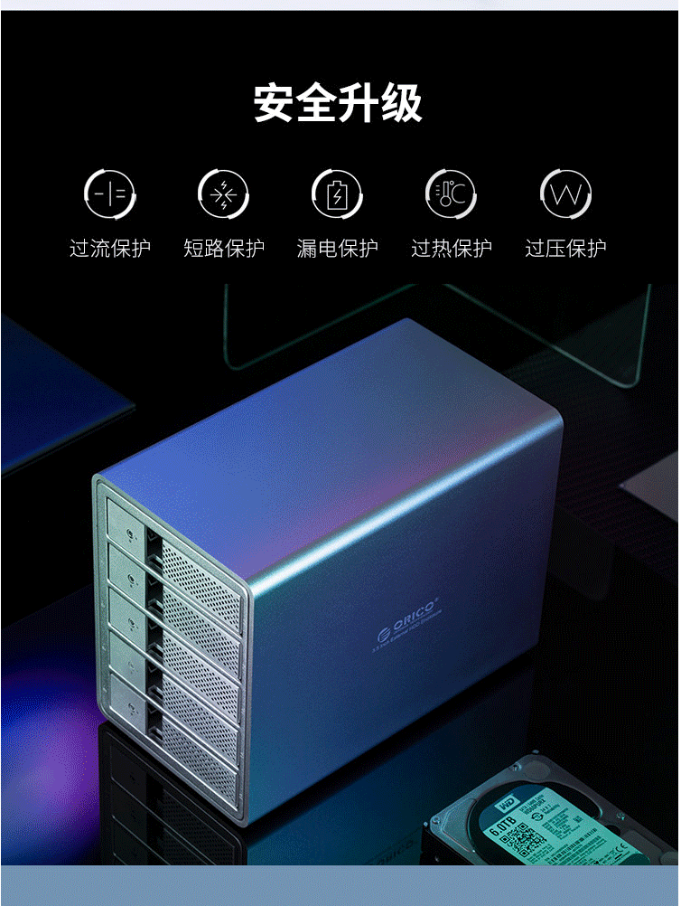 奥睿科(ORICO)硬盘柜 五盘位磁盘柜3.5英寸USB3.0 SATA串口台式机外接硬盘盒子 全铝免工具五盘位 黑色9558U3