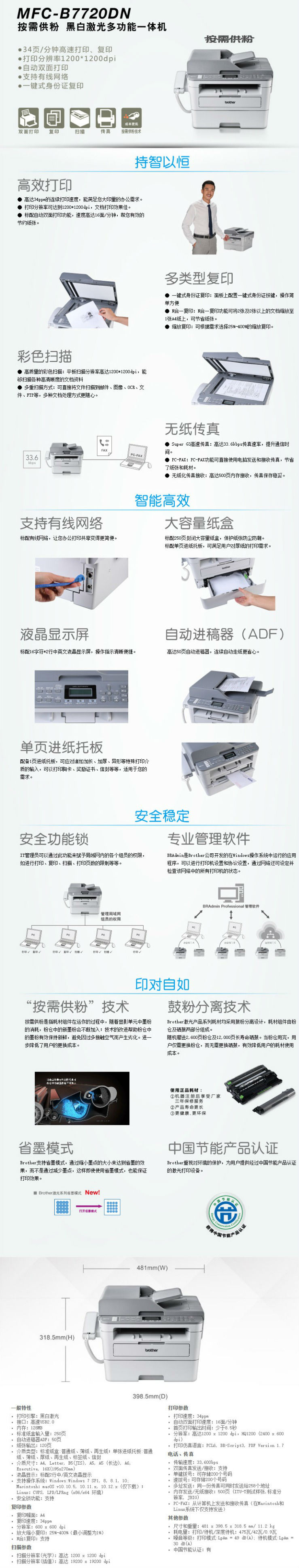 商品名称:兄弟(brother)MFC-B7720DN 黑白激光一体机(双面打印 支持有线网络 近需供粉)
