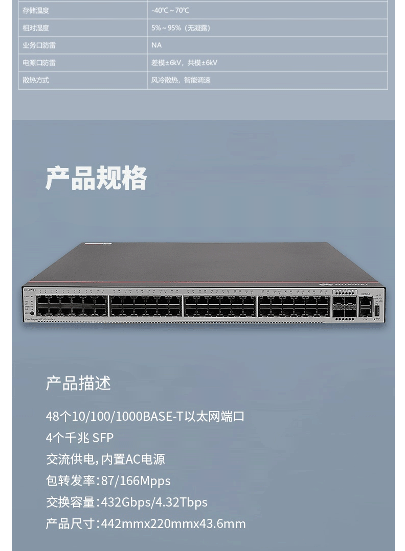 商品名称:华为(HUAWEI)S5735S-L48P4S-A 48口千兆POE供电企业级交换机