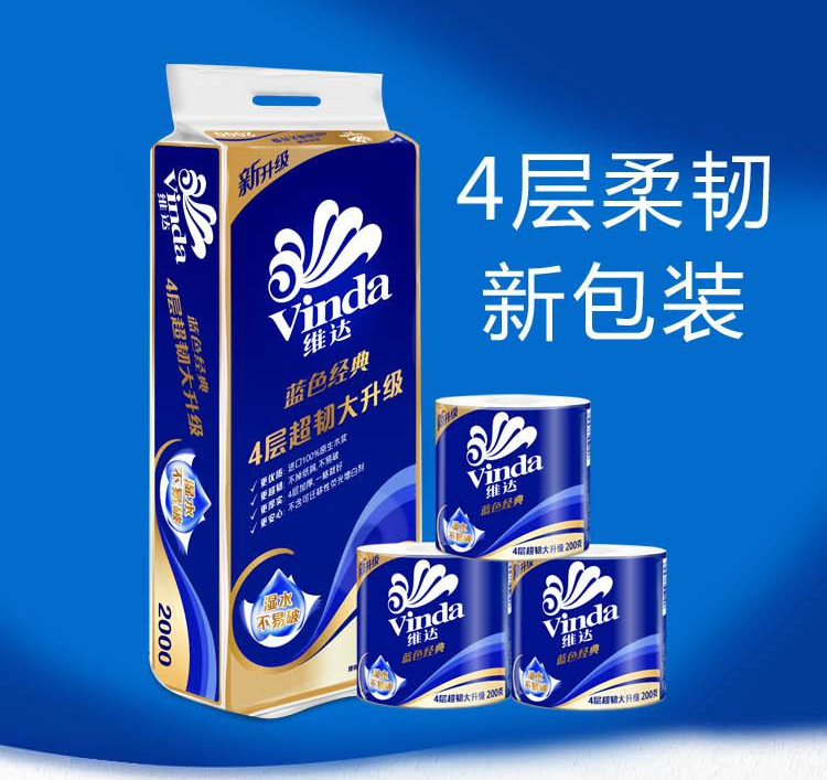 维达(Vinda) 卷纸 蓝色经典4层200g卫生纸巾*10卷 4073 维达卫生纸 维达卷纸 维达蓝色经典
