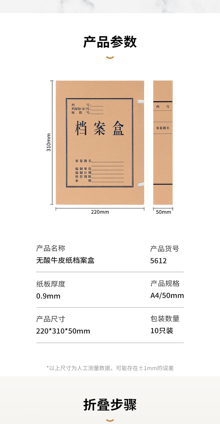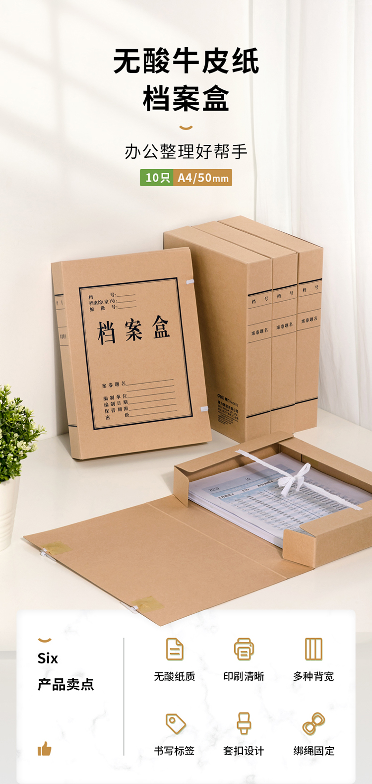 商品名称:得力(deli)50mm无酸牛皮纸档案盒 党建资料盒 加厚文件收纳盒 财务凭证盒5612 (10只/组)