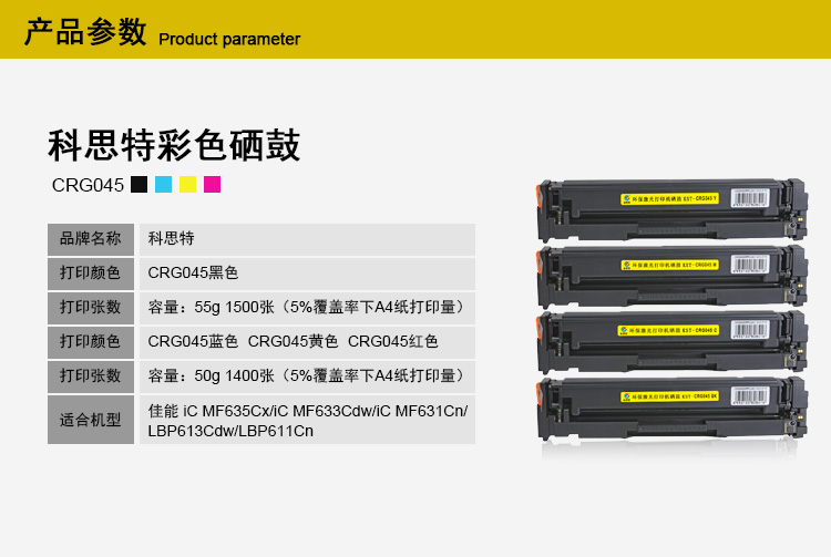 商品名称:科思特CRG045硒鼓 适用佳能 iC MF635Cx/iC MF633Cdw/iC MF631Cn/LBP613Cdw/LBP611Cn 蓝色 专业版