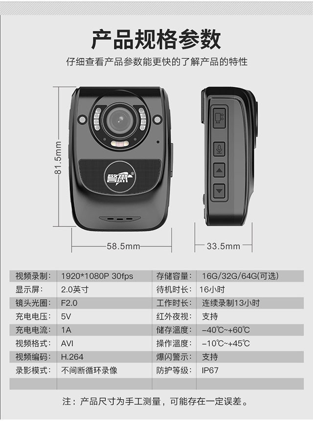 商品名称:警杰DSJ-T8执法记录仪 黑色 128G