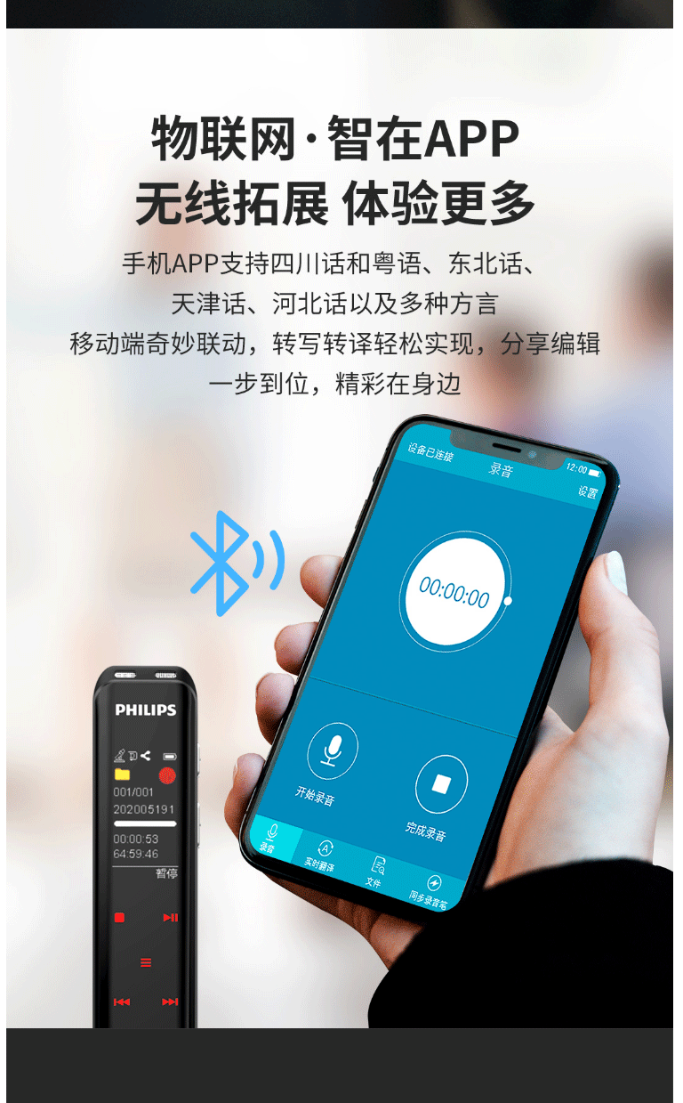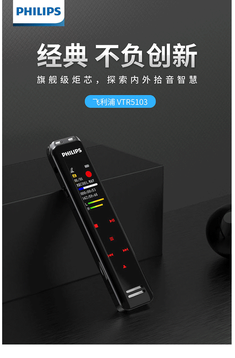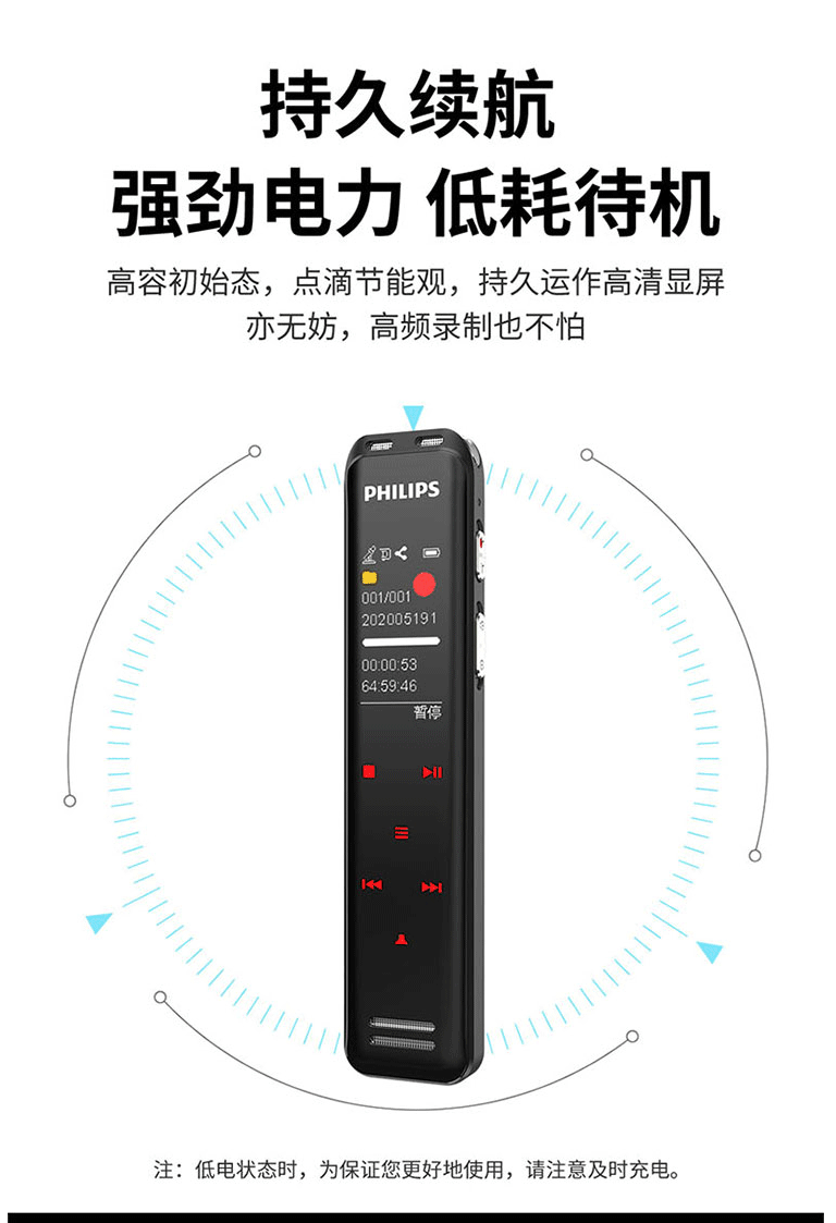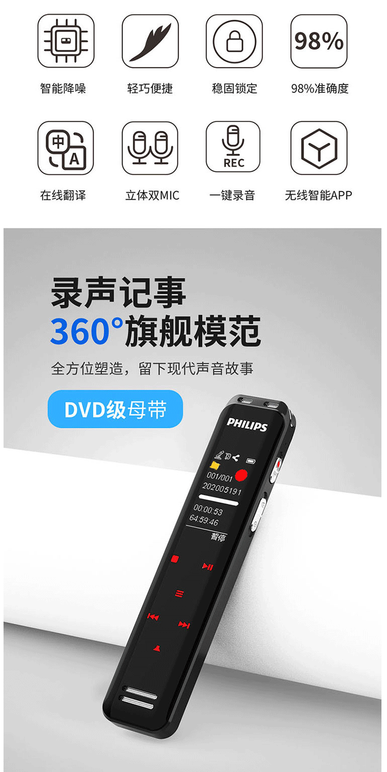 商品名称:飞利浦(PHILIPS)VTR5103 16G AI智能录音笔 双麦克高品质录音 终身免费转文本/翻译