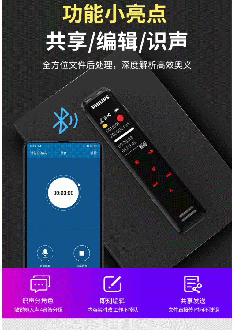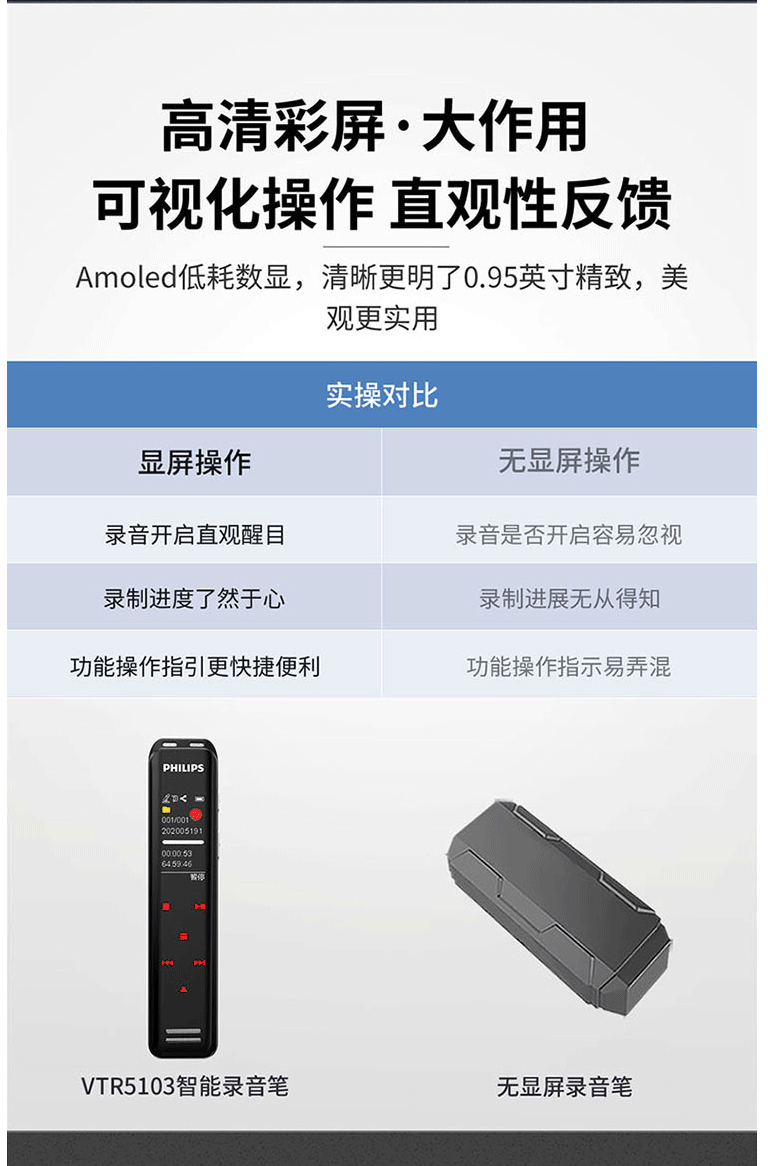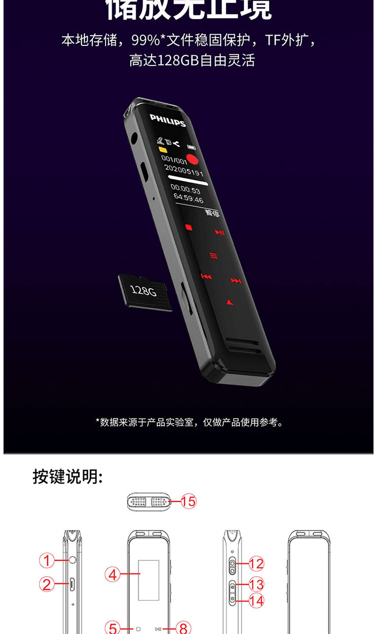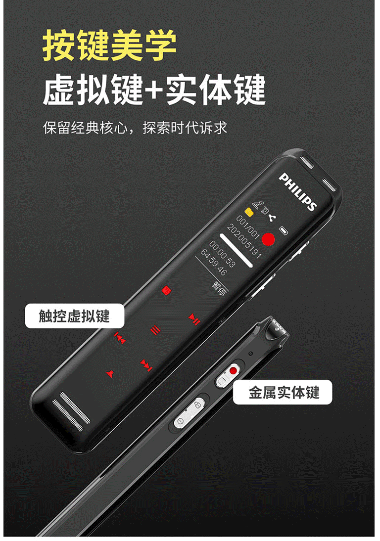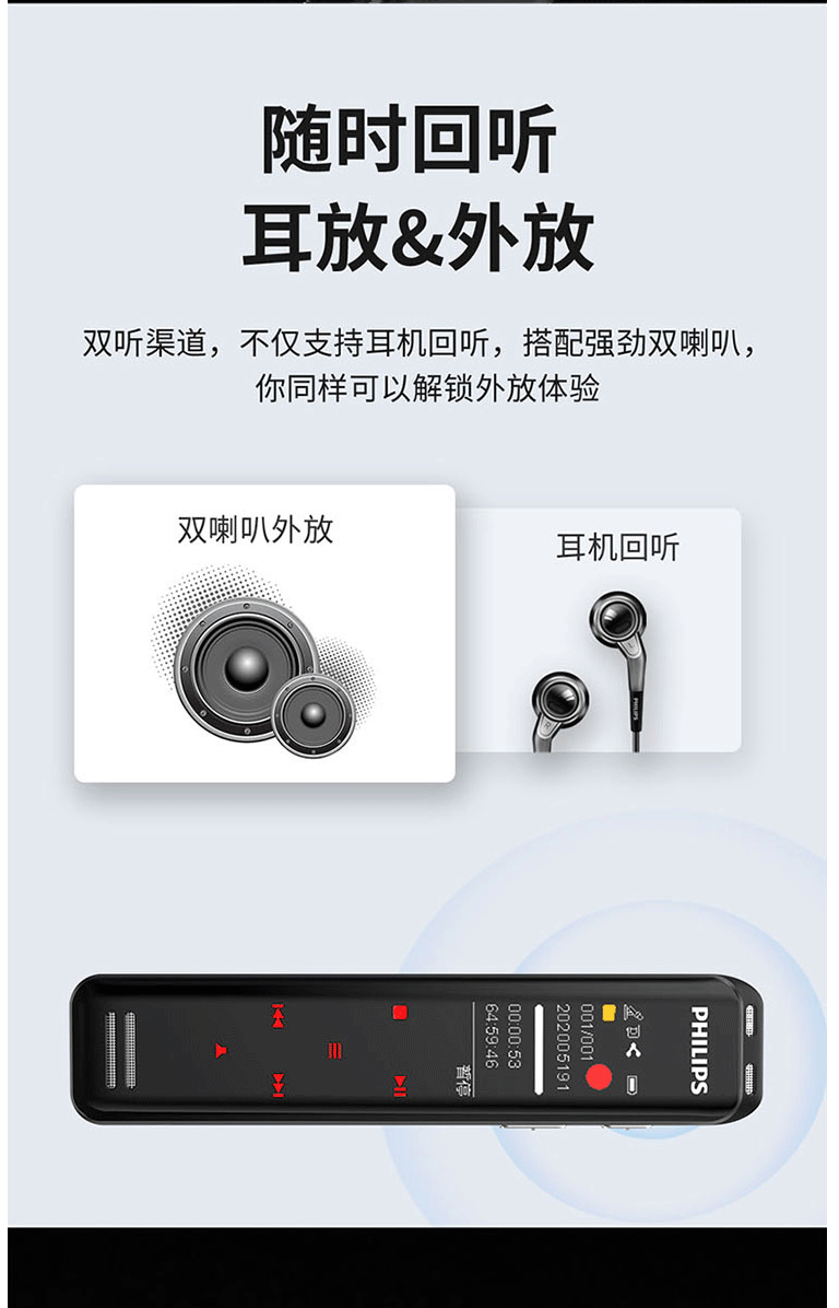 商品名称:飞利浦(PHILIPS)VTR5103 16G AI智能录音笔 双麦克高品质录音 终身免费转文本/翻译