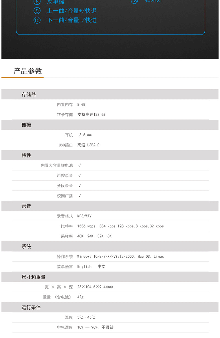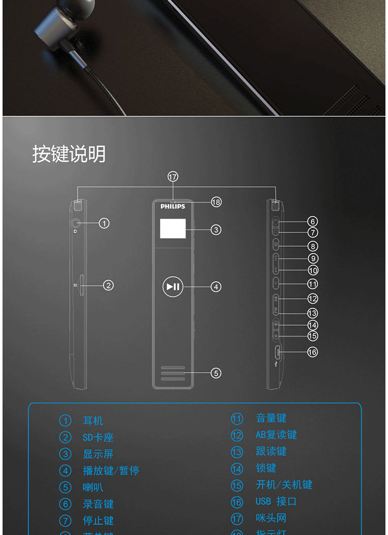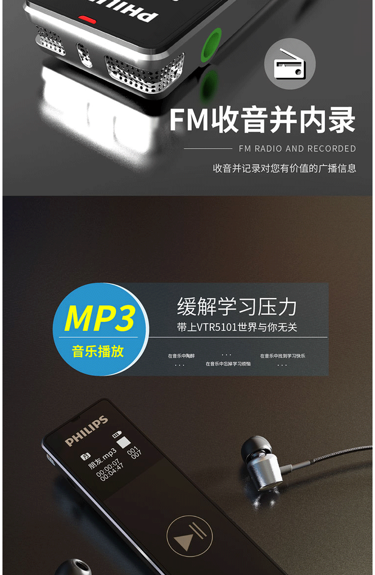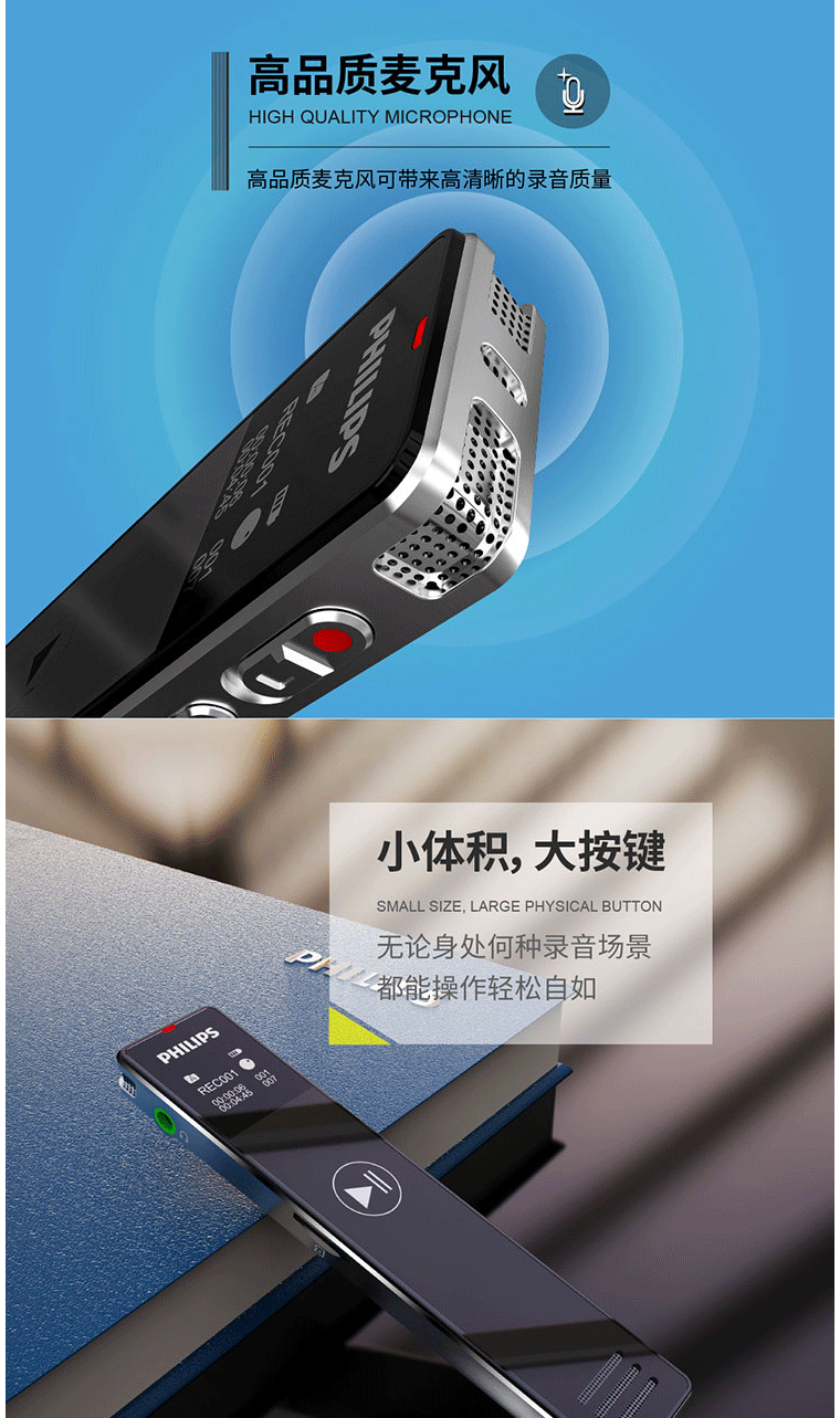 商品名称:飞利浦(PHILIPS)VTR5101 8G 录音笔 商务会议 学习记录