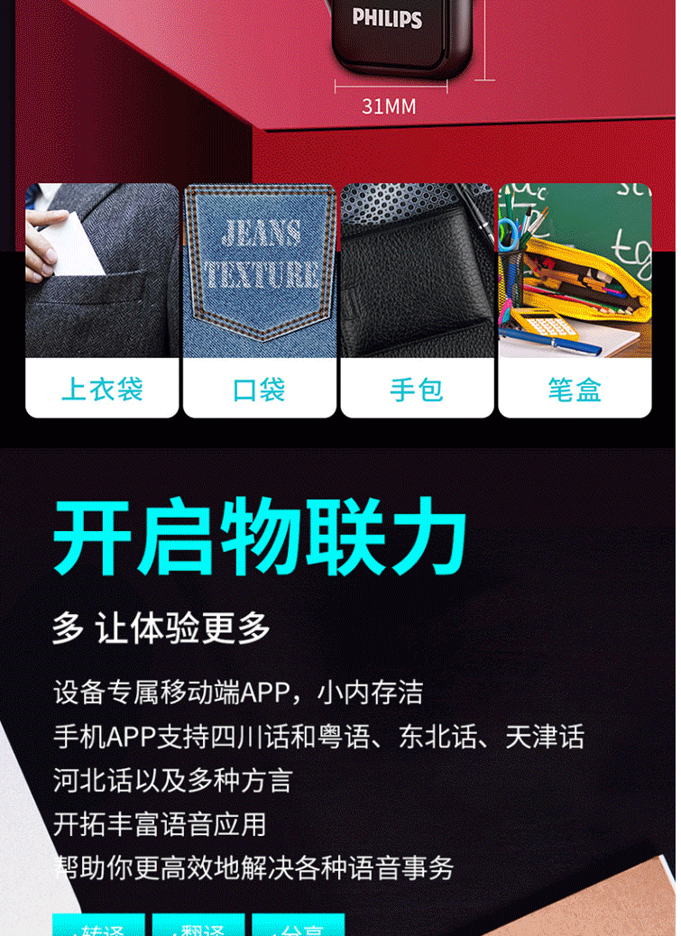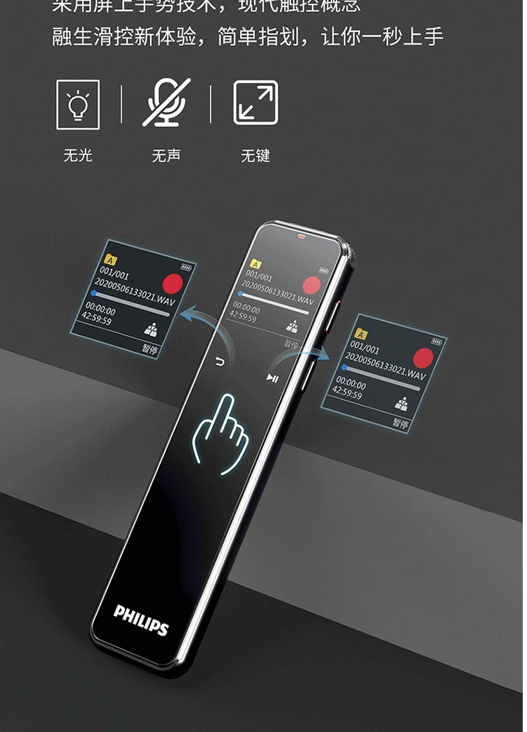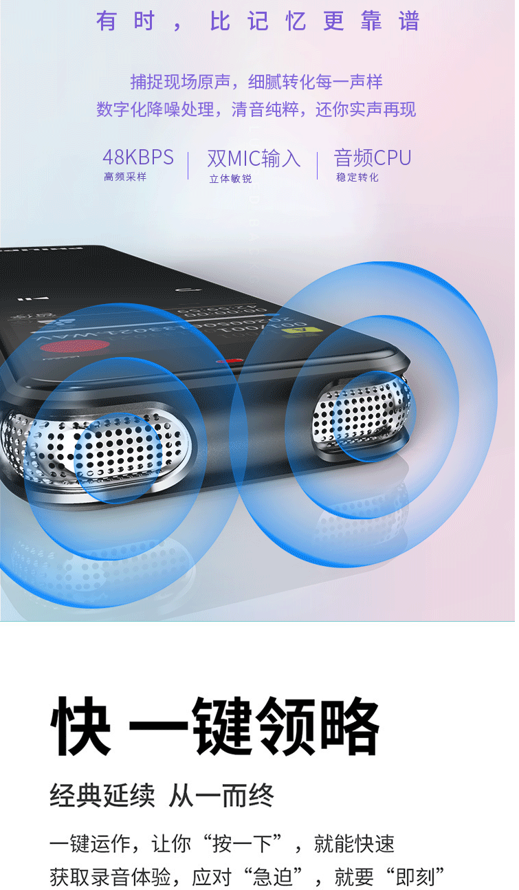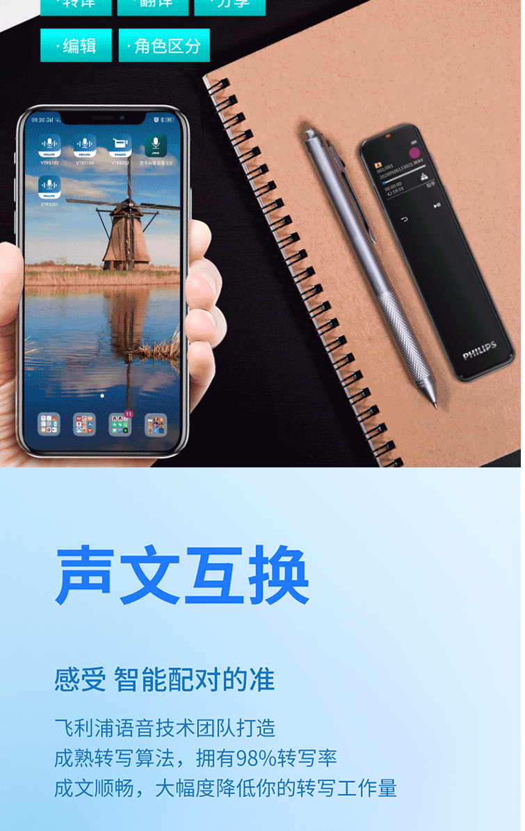 商品名称:飞利浦(PHILIPS)VTR5201录音笔 16G 采访会议课堂 高品质麦克风 终身免费转文本/翻译